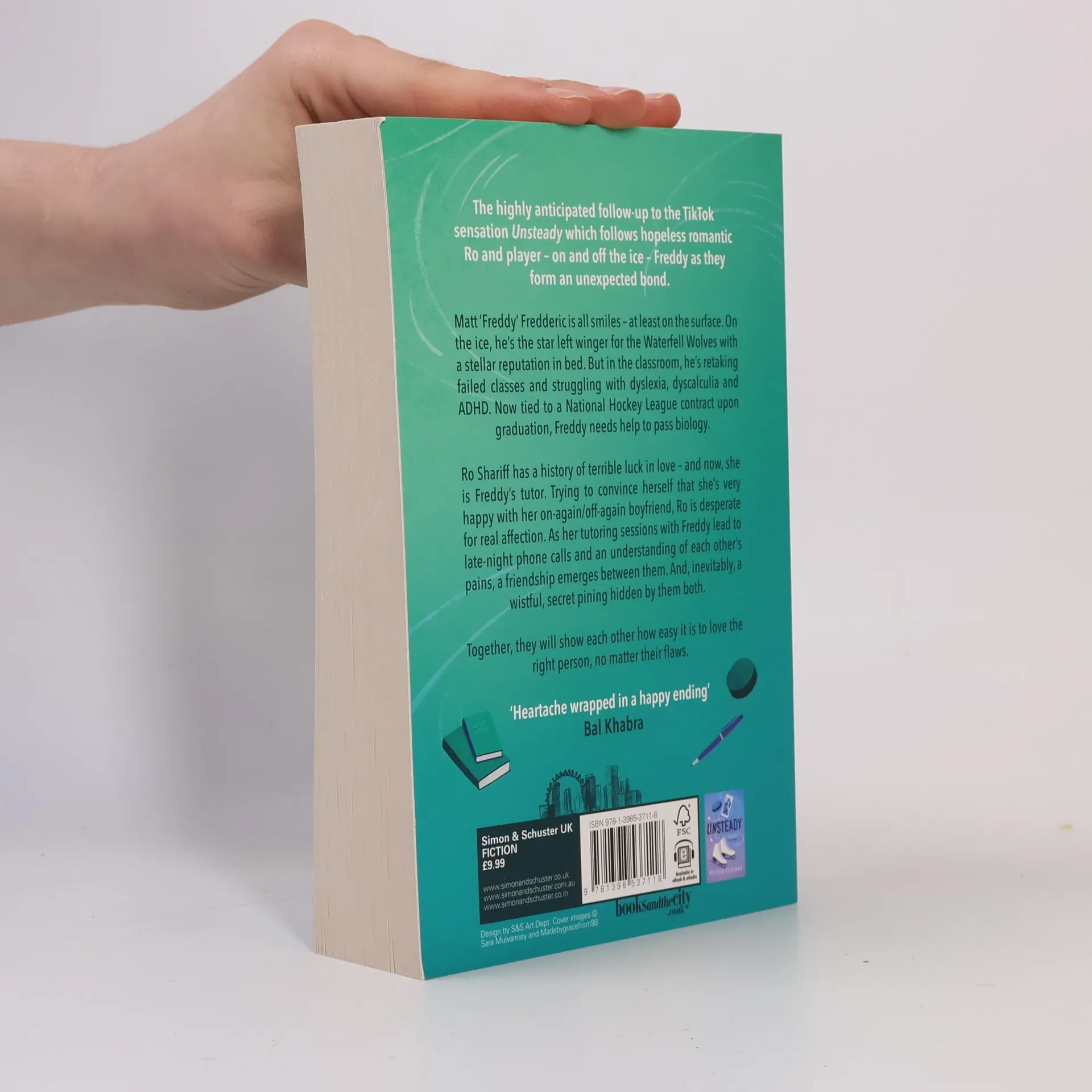 The highly anticipated follow-up to the TikTok sensation Unsteady which follows hopeless romantic Ro and player - on and off the ice - Freddy as they form an unexpected bond. Matt "Freddy" Fredderic is all smiles - at least on the surface. On the ice, he's the star left winger for the Waterfell Wolves with a stellar reputation in bed. But in the classroom, he's retaking failed classes and struggling with dyslexia, dyscalculia, and ADHD. Now tied to a National Hockey League contract upon graduation, Freddy needs help to pass biology. Ro Shariff has a history of terrible luck in love - and now, she is Freddy's tutor. Trying to convince herself that she's very happy with her on again/off again boyfriend, Ro is desperate for real affection. As her tutoring sessions with Freddy lead to late-night phone calls and an understanding of each other's pains, a friendship emerges between them. And, inevitably, a wistful secret pining hidden by them both. Together, they will show each other how easy it is to love the right person, no matter their flaws.
