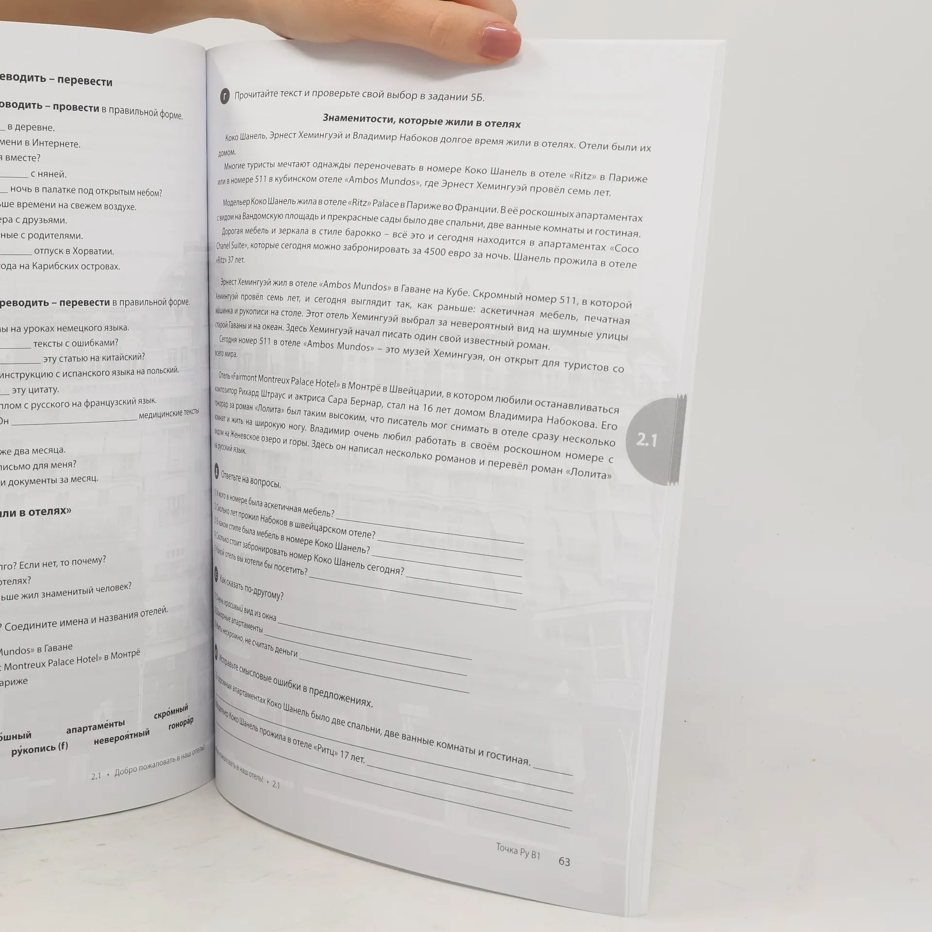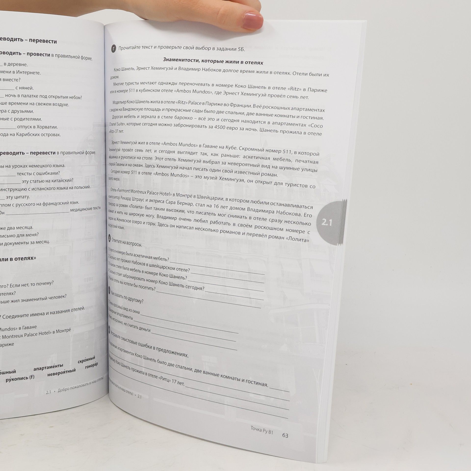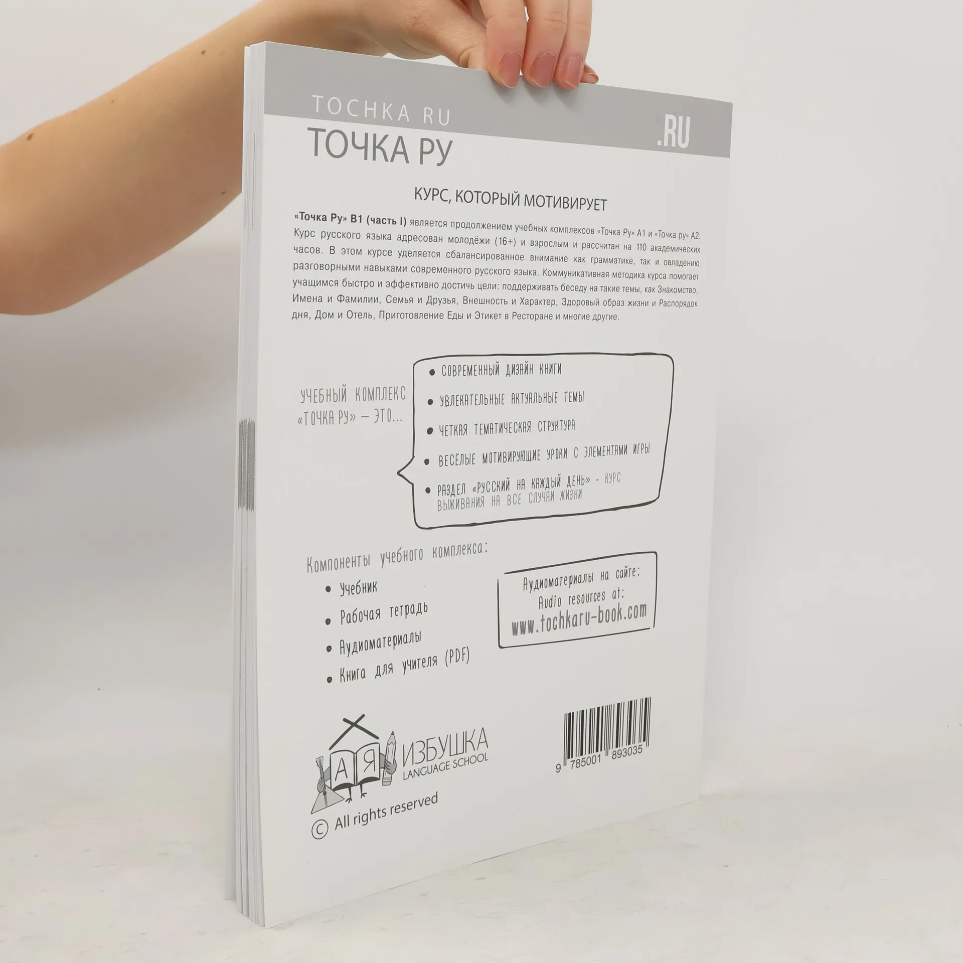 Tochka Russian Course B1 the lesson book and the workbook set.A set of two books, one for lessons and other for exercises.Audio resources are free of charge for those who purchased the book and are available at the bookâ€s web pages.The book set is meant to be used by those who study on their own as well as with a Russian language teacher. The text in the book is in Russian, the exercises are given in Russian, there are all the answers/keys to the exercises in the end of the book.This course is addressed to young people and adults and covers 220 academic hours. The perfect balance of grammar, vocabulary and conversational skills of modern Russian language is the key feature of this course. The combination of traditional and modern teaching methods helps students to achieve their goals quickly and efficiently.Teacherâ€s book is available only at the bookâ€s web pages.Tocka / Tochka ru / / Tocka ru / / Tocka.ru / Tochka.ru / Totchka / Toshka ru / Totska / Totska ru