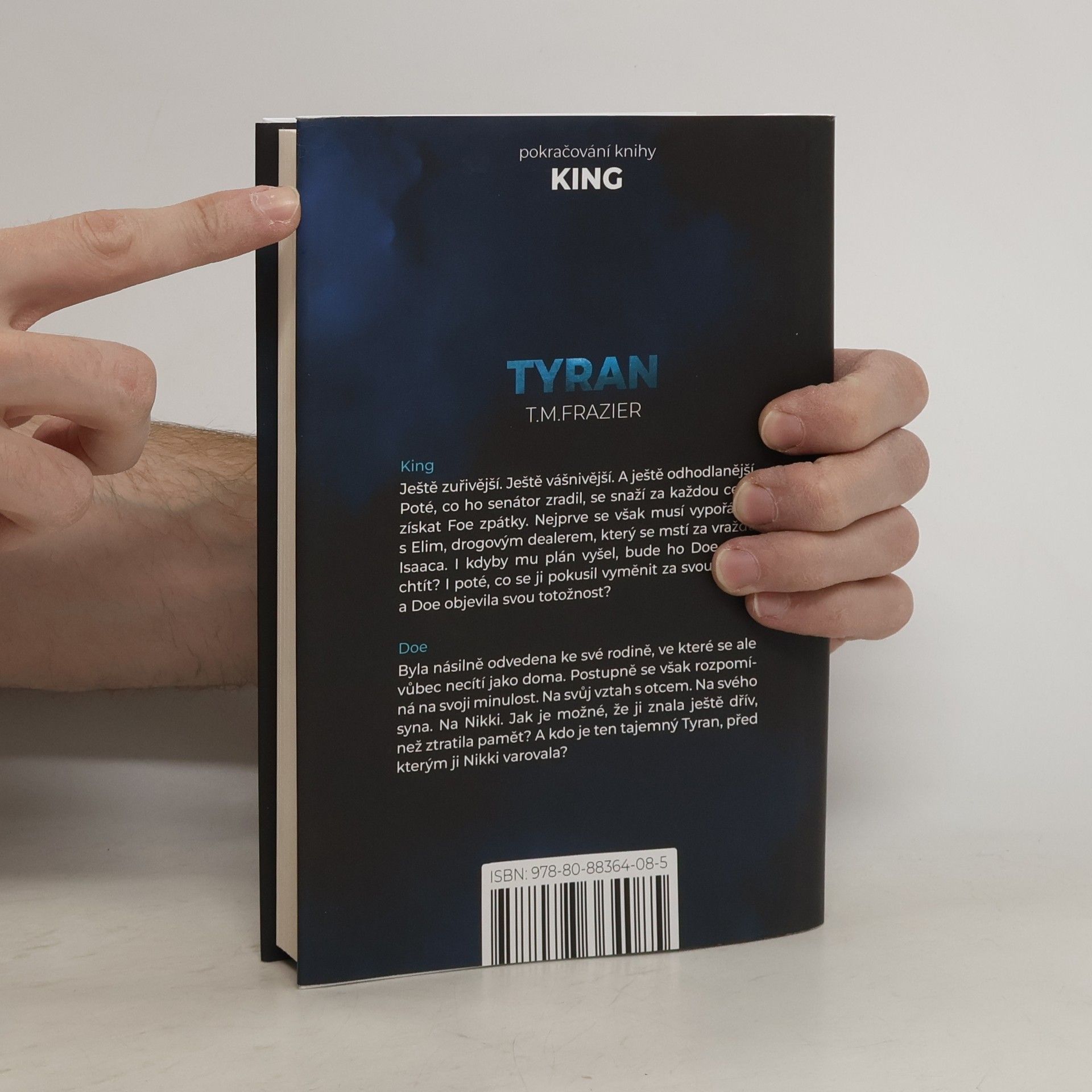 King Ještě zuřivější. Ještě vášnivější. A ještě odhodlanější. Poté, co ho senátor zradil, se snaží za každou cenu získat Doe zpátky. Nejprve se však musí vypořádat s Elim, drogovým dealerem, který se mu mstí za vraždu Isaaca. I kdyby mu plán vyšel, bude ho Doe stále chtít? I poté, co se ji pokusil vyměnit za svou dceru a Doe objevila svou totožnost? Doe byla násilně odvedena ke své rodině, ve které se ale vůbec necítí jako doma. Postupně se však rozpomíná na svoji minulost. Na svůj vztah s otcem. Na svého syna. Na Nikki. Jak je možné, že ji znala ještě dřív, než ztratila paměť? A kdo je ten tajemný Tyran, před kterým ji Nikki varovala?