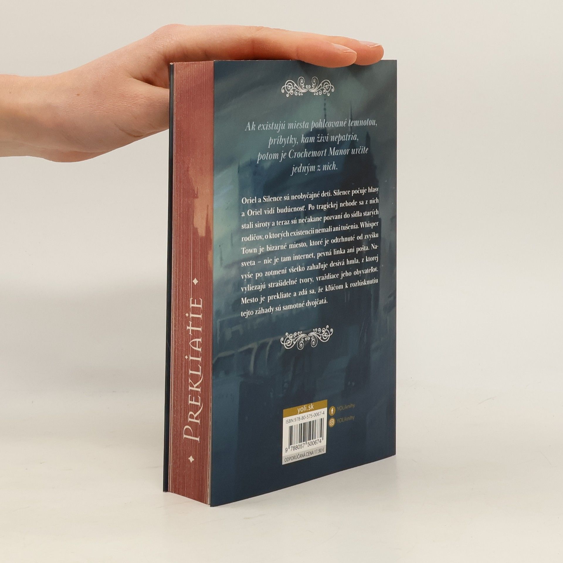 Ak existujú miesta pohlcované temnotou, príbytky, kam živí nepatria,potom je Crochemort Manor určite jedným z nich.Oriel a Silence sú neobyčajné deti. Silence počuje hlasy a Oriel vidí budúcnosť. Po tragickej nehode sa z nich stali siroty a teraz sú nečakane pozvaní do sídla starých rodičov, o ktorých existencii nemali ani tušenia. Whisper Town je bizarné miesto, ktoré je odtrhnuté od zvyšku sveta – nie je tam internet, pevná linka ani pošta. Navyše po zotmení všetko zahaľuje desivá hmla, z ktorej vyliezajú strašidelné tvory, vraždiace jeho obyvateľov. Mesto je prekliate a zdá sa, že kľúčom k rozlúsknutiu tejto záhady sú samotné dvojčatá.