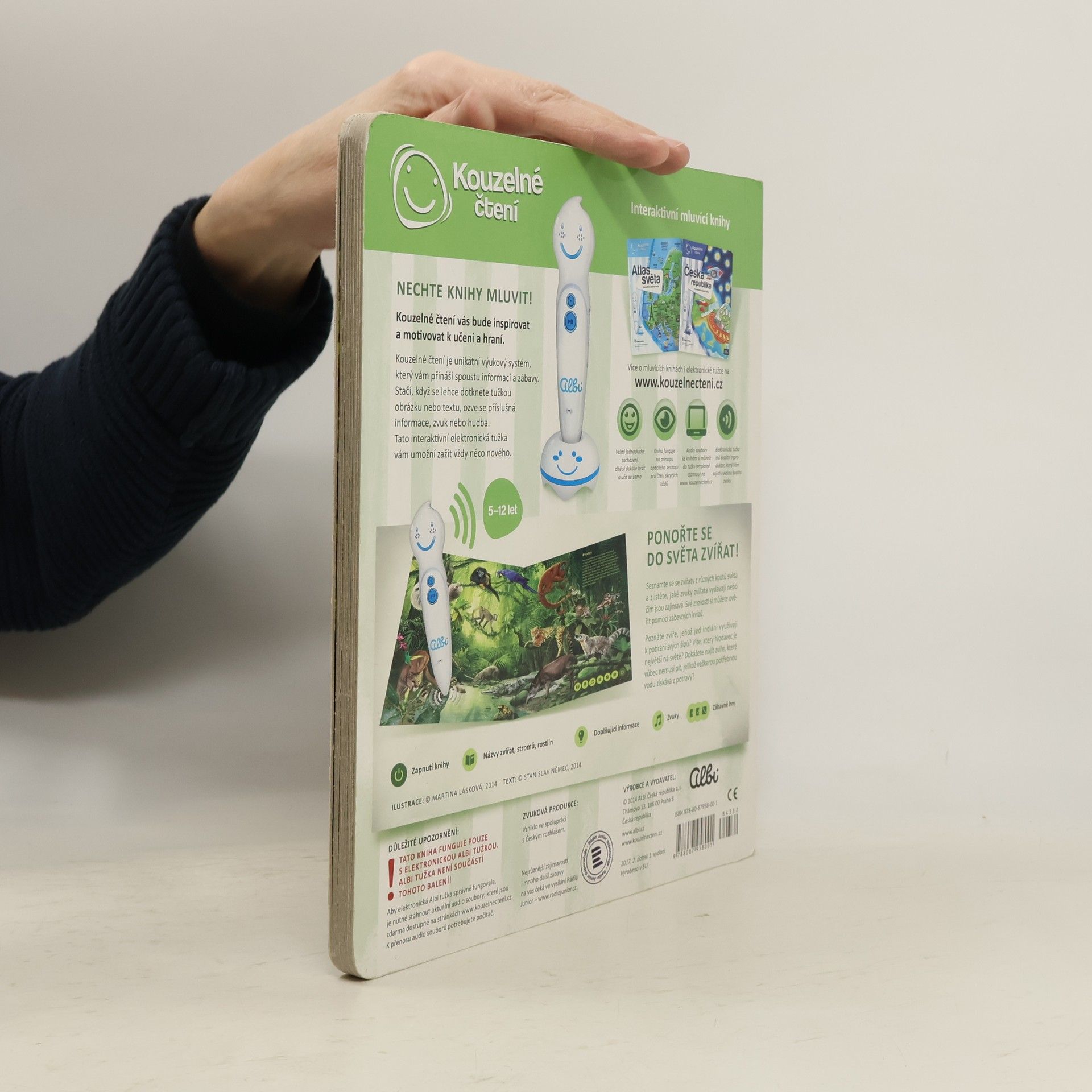 Ponořte se do světa zvířat! Seznamte se se zvířaty ze všech koutů světa a zjistěte, jaké zvuky vydávají, čím se živí nebo čím jsou jedinečná. Kniha vás tématicky provede osmi různými prostředími z naší planety, jako je les, savana, poušť, moře a další. Na každé straně se dozvíte, jaká zvířata v daném prostředí žijí, jak se jmenují, jaké zvuky vydávají a čím jsou zajímavá. Své znalosti si pak můžete ověřit pomocí zábavných kvízů, které jsou vždy rozděleny do tří kategorií: najdi zvíře podle názvu, najdi zvíře podle zvuku, najdi zvíře podle zajímavosti. Kniha je namluvena známým českým hercem Otakarem Brouskem ml. Kniha obsahuje přes 900 zvuků a textů. Kniha vznikla ve spolupráci s Českým rozhlasem.