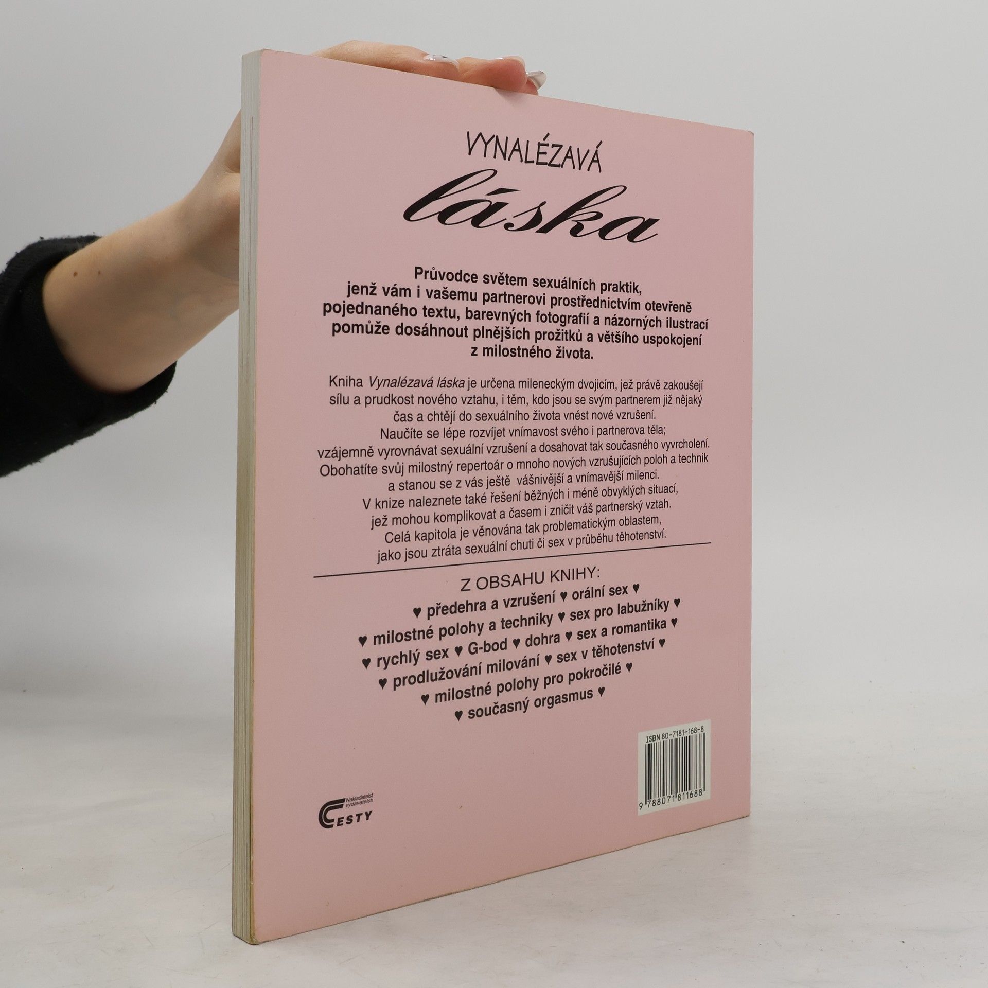 Průvodce světem sexuálních praktik, jenž vám i vašemu partnerovi prostřednictvím otevřeně pojednaného textu, barevných fotografií a názorných ilustrací pomůže dosáhnout plnějších prožitků a většího uspokojení z milostného života. Kniha Vynalézavá láska je určena mileneckým dvojicím, jež právě zakoušejí sílu a prudkost nového vztahu, i těm, kdo jsou se svým partnerem již nějaký čas a chtějí do sexuálního života vnést nové vzrušení. Naučíte se lépe rozvíjet vnímavost svého i partnerova těla; vzájemně vyrovnávat sexuální vzrušení a dosahovat tak současného vyvrcholení, Obohatíte svůj milostný repertoár o mnoho nových vzrušujících poloh a technik a stanou se z vás ještě vášnivější a vnímavější milenci. V knize naleznete také řešení běžných i méně obvyklých situací, jež mohou komplikovat a časem i zničit váš partnerský vztah. Celá kapitola je věnována tak problematickým oblastem, jako jsou ztráta sexuální chuti či sex v průběhu těhotenství. Z obsahu knihy: • předehra a vzrušení • orální sex • milostné polohy a techniky • sex pro labužníky • • rychlý sex • G-bod • dohra • sex a romantika • prodlužování milování • sex v těhotenství • milostné polohy pro pokročilé • současný orgasmus