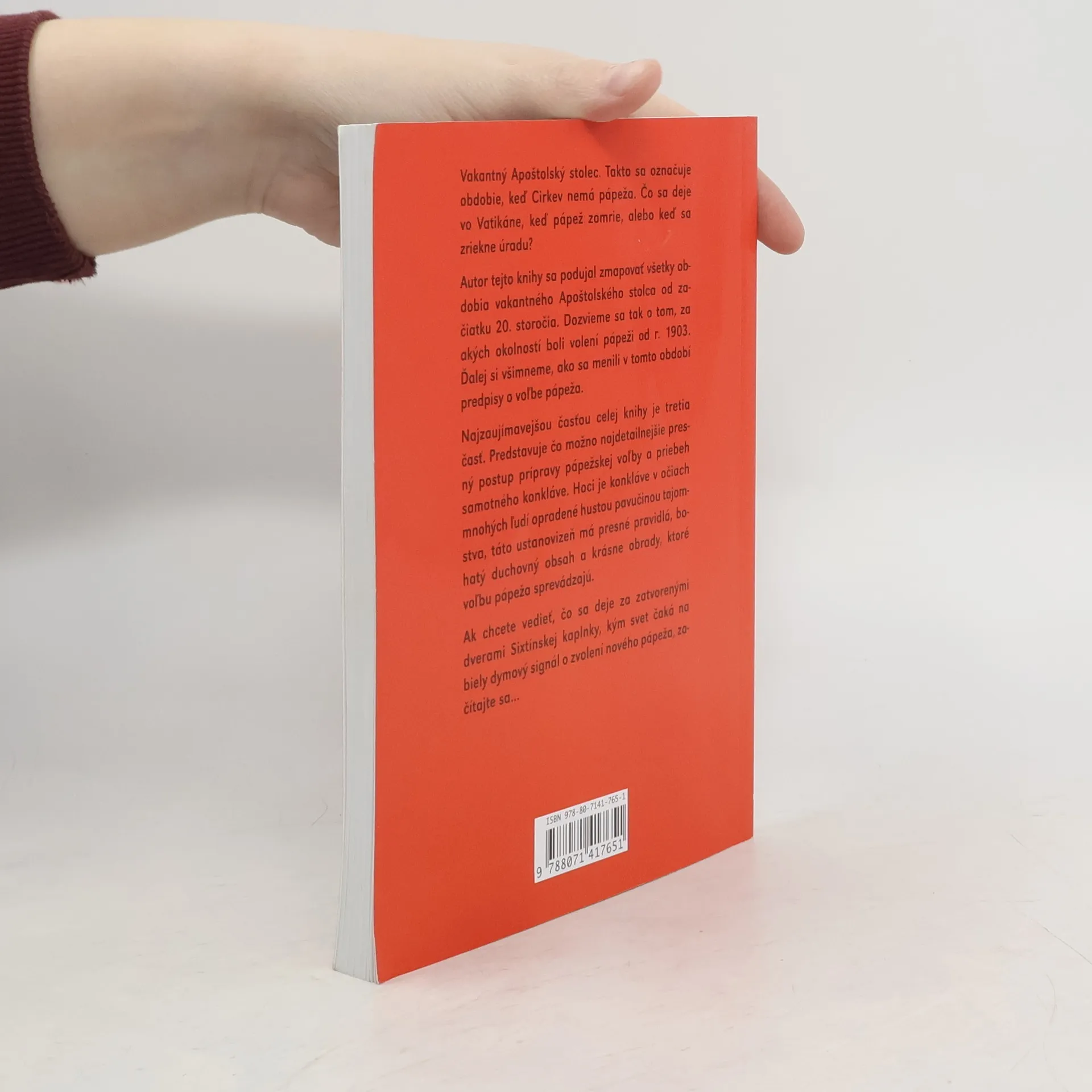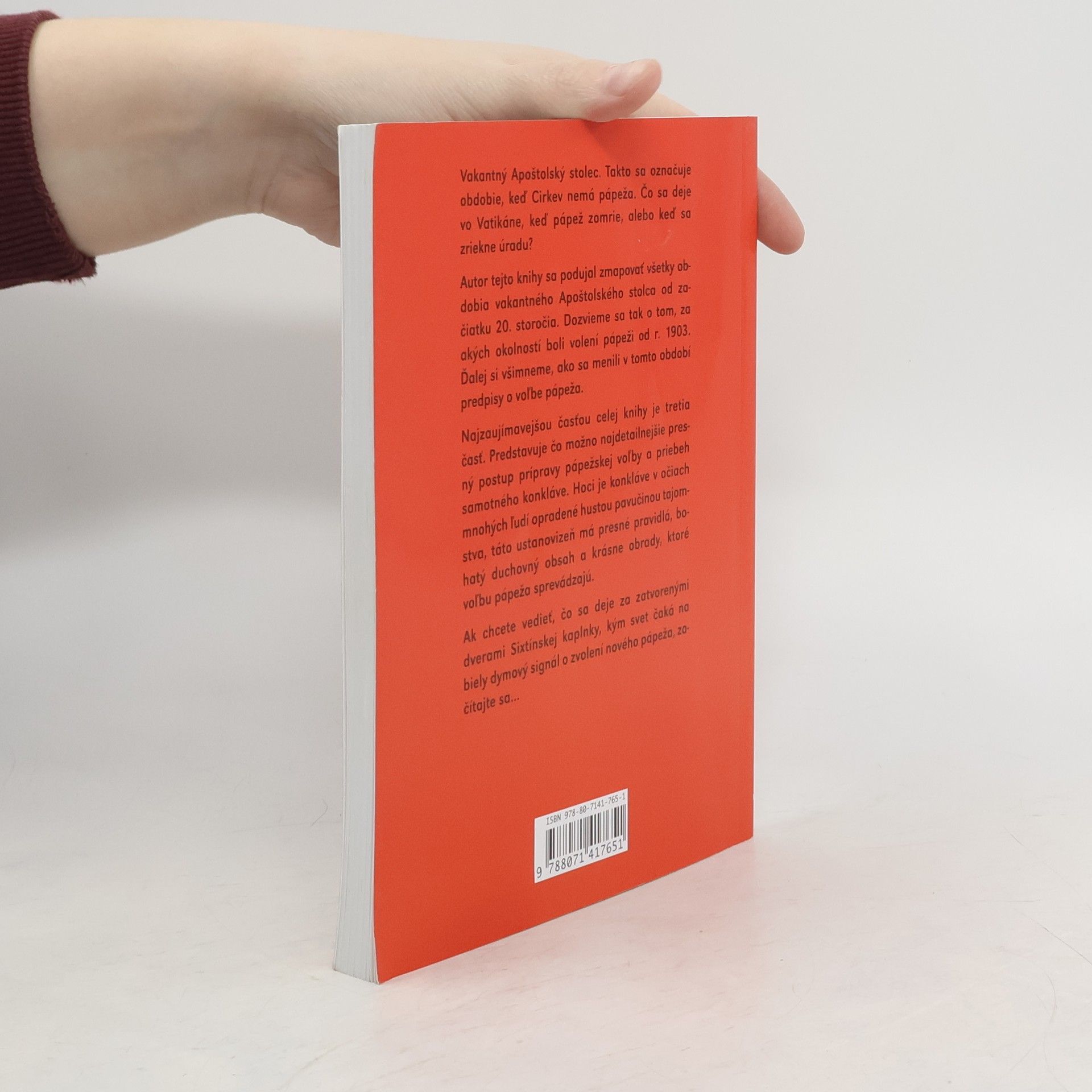Autor tejto knihy sa podujal zmapovať všetky obdobia vakantného Apoštolského stolca od začiatku 20.storočia. Dozvieme sa tak o tom, za akých okolností boli volení pápeži od roku 1903. Ďalej si všimneme, ako sa menili v tomto období predpisy o vľbe pápeža.