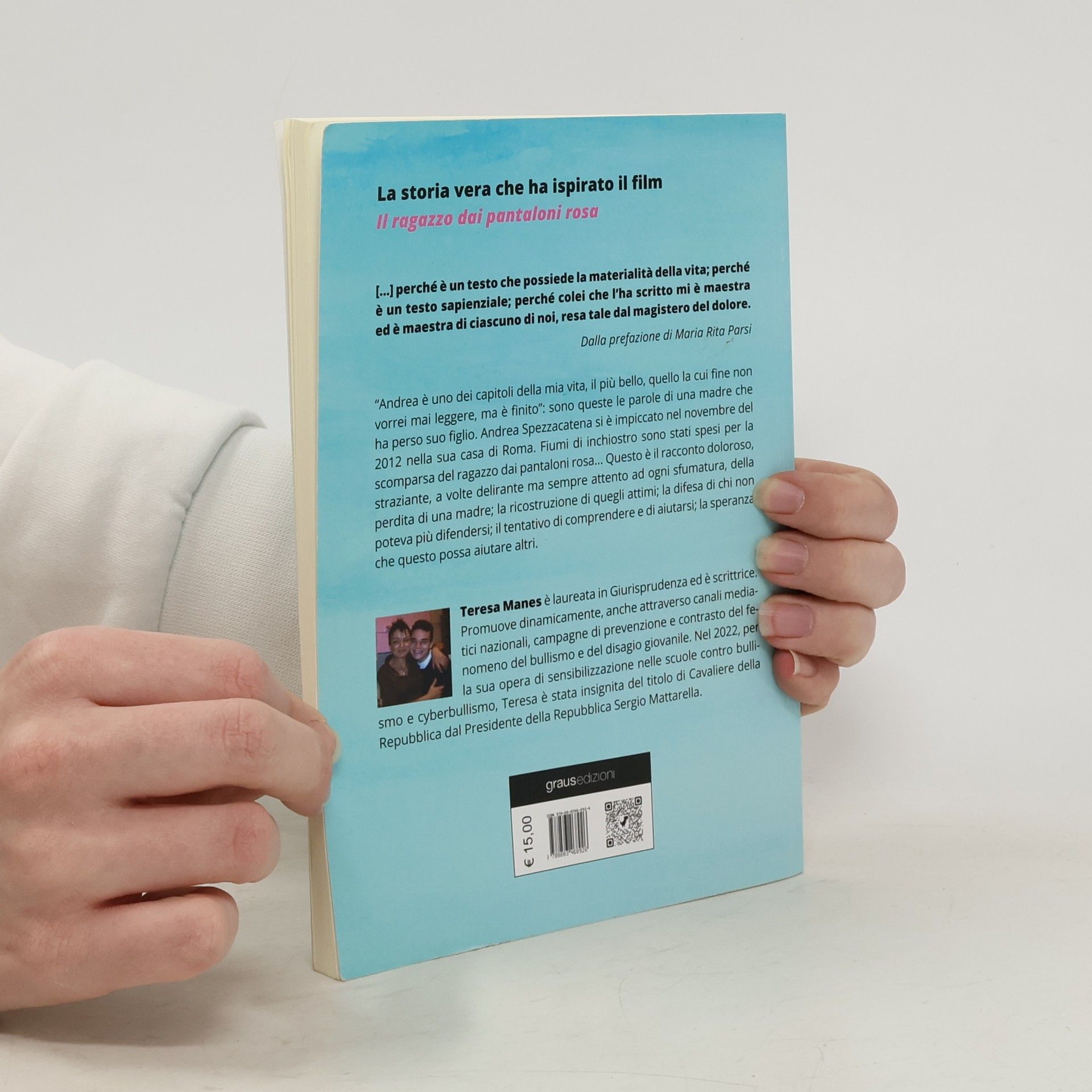 "Andrea è uno dei capitoli della mia vita, il più bello, quello la cui fine non vorrei mai leggere, ma è finito": sono queste le parole di una madre che ha perso suo figlio. Andrea Spezzacatena si è impiccato lo scorso 20 novembre nella sua casa di Roma. Fiumi di inchiostro sono stati spesi per la scomparsa "del ragazzo dai pantaloni rosa"... Questo è il racconto doloroso, straziante, a volte delirante ma sempre attento ad ogni sfumatura, della perdita di una madre; la ricostruzione di quegli attimi; la difesa di chi non poteva più difendersi; il tentativo di comprendere e di aiutarsi; la speranza che questo possa aiutare altri