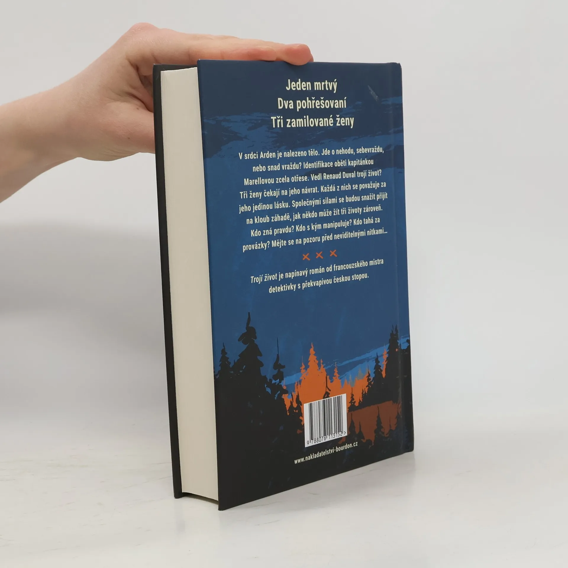 Jeden mrtvý. Dva pohřešovaní. Tři zamilované ženy. V srdci Arden je nalezeno tělo. Jde o nehodu, sebevraždu, nebo snad vraždu? Identifikace oběti kapitánkou Marellovou zcela otřese. Vedl Renaud Duval trojí život? Tři ženy čekají na jeho návrat. Každá z nich se má za jeho jedinou lásku. Společnými silami se budou snažit přijít na kloub záhadě, jak někdo může žít tři životy zároveň. Kdo zná pravdu? Kdo s kým manipuluje? Kdo tahá za provázky? Mějte se na pozoru před neviditelnými nitkami… Trojí život je napínavý román od francouzského mistra detektivky s překvapivou českou stopou. Michel Bussi je jedním z nejoblíbenějších autorů detektivek ve Francii, který od roku 2013 patří mezi deset nejprodávanějších francouzských spisovatelů. Jeho knihy byly přeloženy do více než 30 jazyků a prodalo se jich dosud přes 13 milionů výtisků.