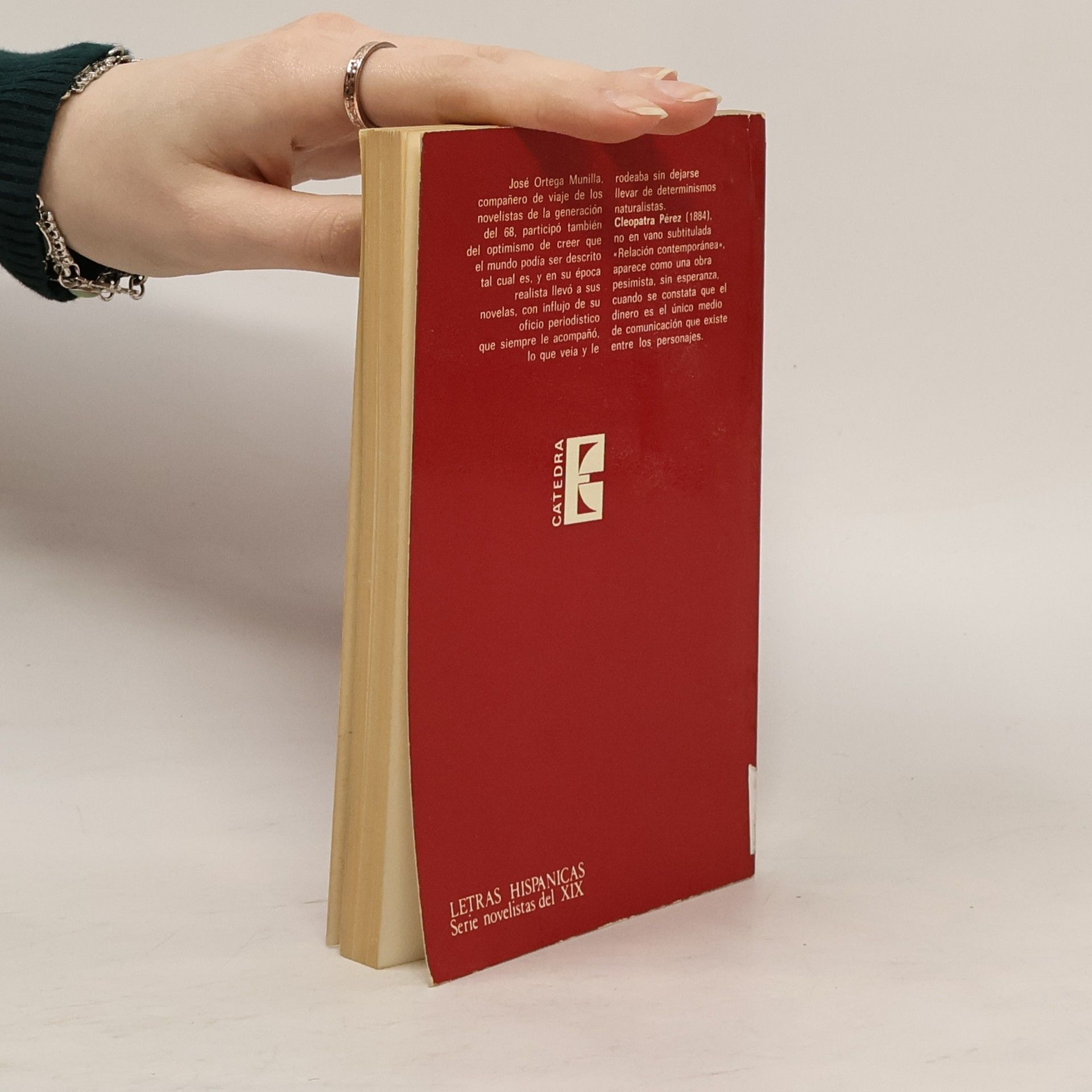 José Ortega Munilla compañero de viaje de los novelistas de la generación del 68, participó también del optimismo de creer que el mundo podía ser descrito tal cual es, y en su época realista llevó a sus novelas, con influjo de su oficio periodístico que siempre le acompañó, lo que veía y le rodeaba sin dejarse llevar de determinismos naturalistas. Cleopatra Pérez, no en vano subtitulada «Relación contemporánea», aparece como una obra pesimista, son esperanza, cuando se constata que el dinero es el único medio de comunicación que existe entre los personajes.