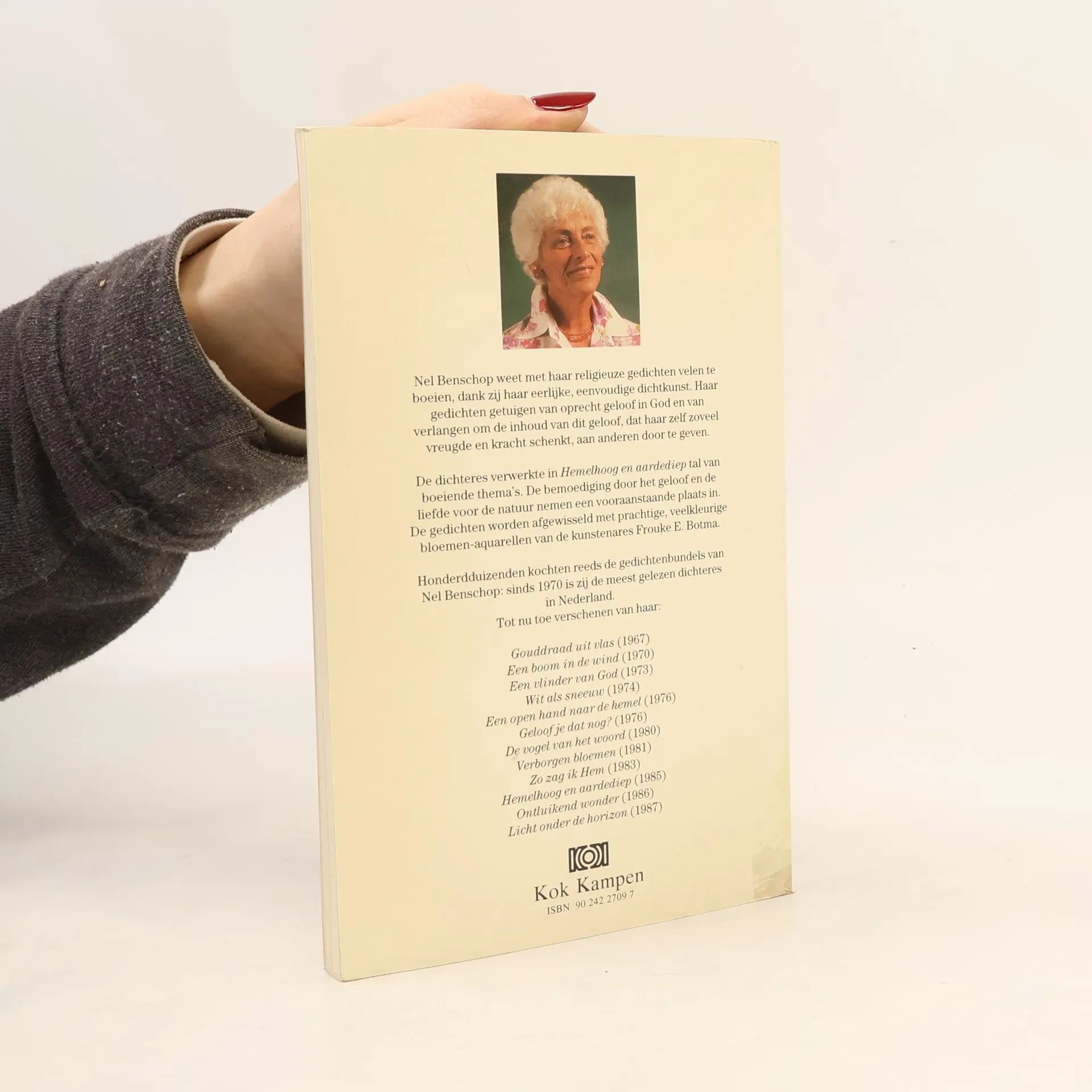 Nel Benschop weet met haar religieuze gedichten velen te boeien, dank zij haar eerlijke, eenvoudige dichtkunst. Haar gedichten getuigen van oprecht geloof in God en van verlangen om de inhoud van dit geloof, dat haar zelf zoveel vreugde en kracht schenkt, aan anderen door te geven.De dichteres verwerkte in "Hemelhoog en aardediep" tal van boeiende thema's. De bemoediging door het geloof en de liefde voor de natuur nemen een vooraanstaande plaats in. De gedichten worden afgewisseld met prachtige, veelkleurige bloemen-aquarellen van de kunstenares Frouke E. Botma.Honderdduizenden kochten reeds de gedichtenbundels van Nel Benschop: sinds 1970 is zij de meest gelezen dichteres in Nederland.