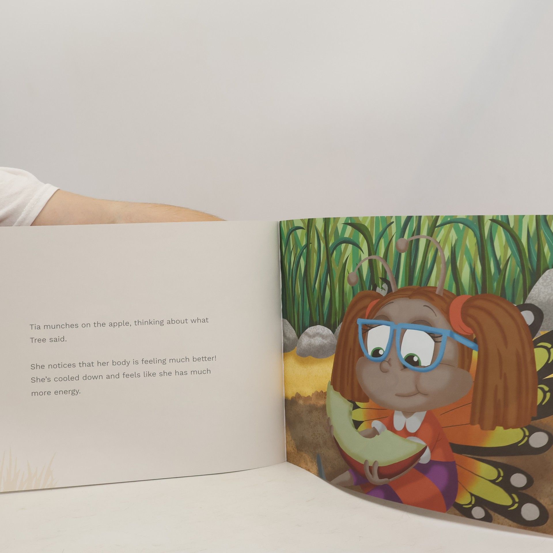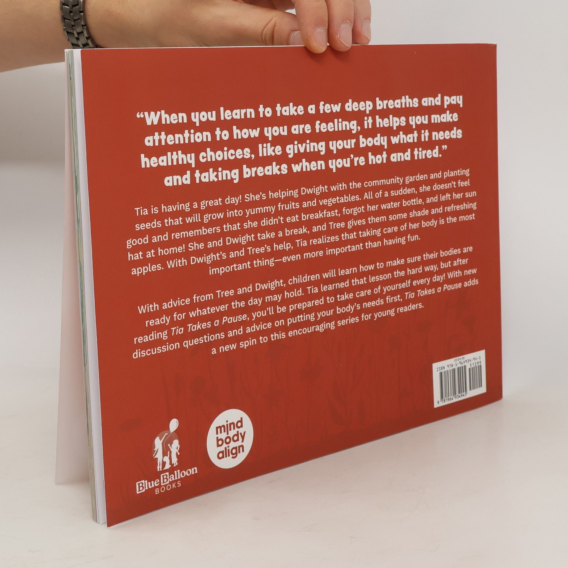 "When you learn to take a few deep breaths and pay attention to how you are feeling, it helps you make healthy choices, like giving your body what it needs and taking breaks when you're hot and tired." Tia is having a great day! She's helping Dwight with the community garden and planting seeds that will grow into yummy fruits and vegetables. All of a sudden, she doesn't feel good and remembers that she didn't eat breakfast, forgot her water bottle, and left her sun hat at home! She and Dwight take a break, and Tree gives them some shade and refreshing apples. With Dwight's and Tree's help, Tia realizes that taking care of her body is the most important thing-even more important than having fun. With advice from Tree and Dwight, children will learn how to make sure their bodies are ready for whatever the day may hold. Tia learned that lesson the hard way, but after reading Tia Takes a Pause, you'll be prepared to take care of yourself every day! With new discussion questions and advice on putting your body's needs first, Tia Takes a Pause adds a new spin to this encouraging series for young readers.