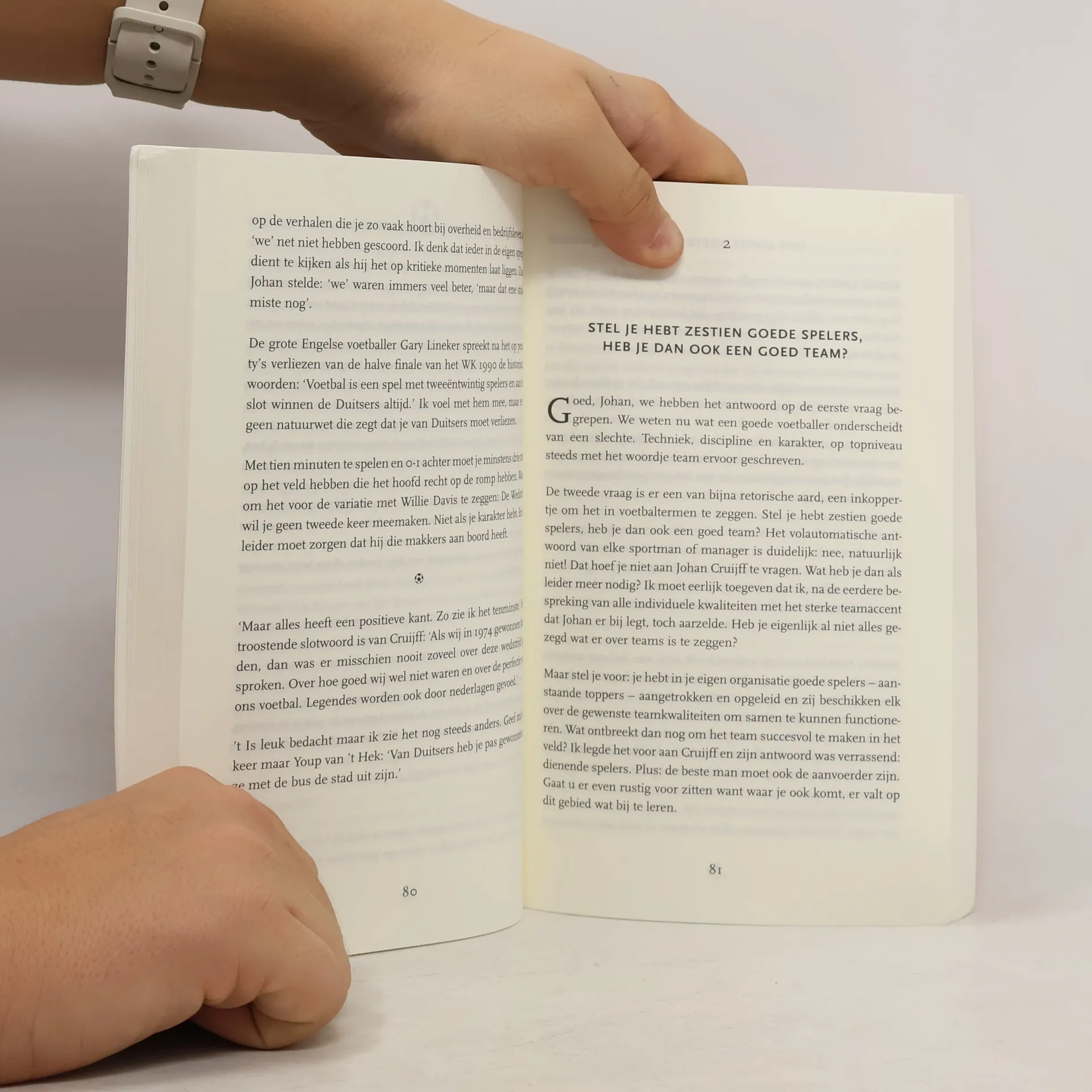 Beschrijving van een aantal principes van leidinggeven aan de hand van uitspraken en ideeën van topvoetballer Johan Cruijff.