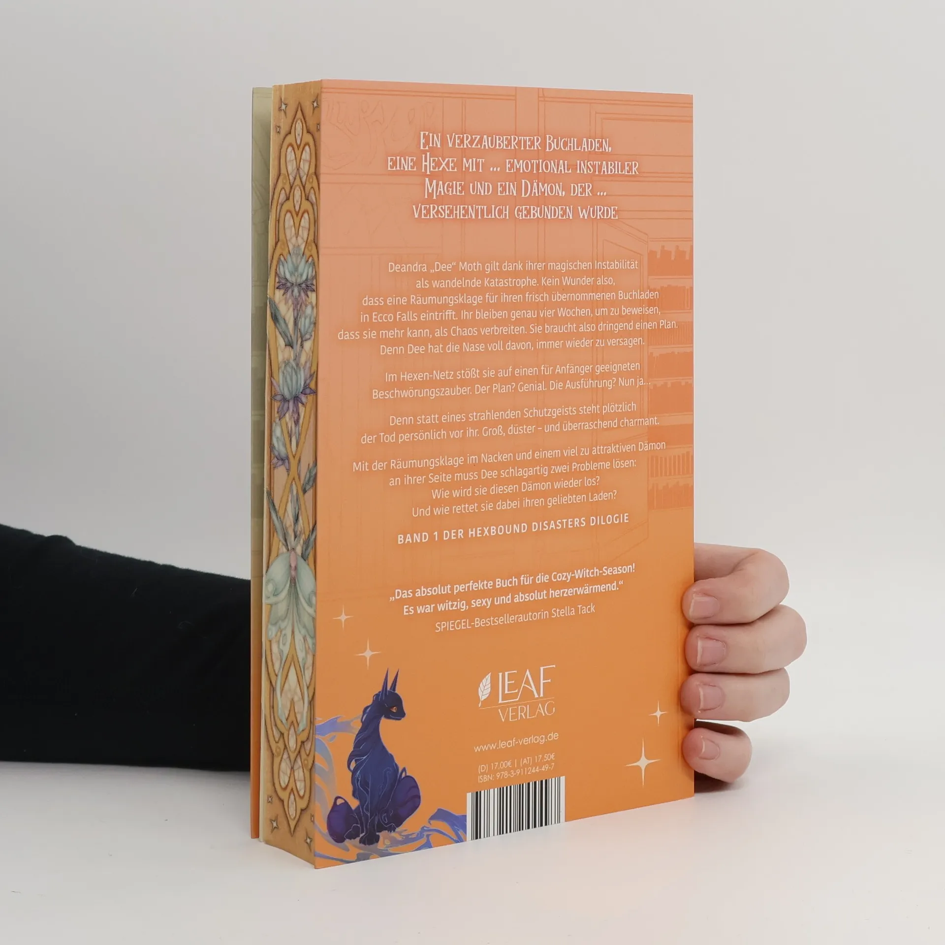 Ein verzauberter Buchladen, eine Hexe mit ... emotional instabiler Magie und ein Dämon, der ... versehentlich gebunden wurde Sei vorsichtig mit deinen Wünschen, sie könnten in Erfüllung gehen! Deandra „Dee“ Moth gilt dank ihrer magischen Instabilität als wandelnde Katastrophe. Kein Wunder also, dass eine Räumungsklage für ihren frisch übernommenen Buchladen in Ecco Falls eintrifft. Ihr bleiben genau vier Wochen, um zu beweisen, dass sie mehr kann, als Chaos verbreiten. Sie braucht also dringend einen Plan. Denn Dee hat die Nase voll davon, immer wieder zu versagen. Im Hexen-Netz stößt sie auf einen für Anfänger geeigneten Beschwörungszauber. Der Plan? Genial. Die Ausführung? Nun ja… Denn statt eines strahlenden Schutzgeists steht plötzlich der Tod persönlich vor ihr. Groß, düster – und überraschend charmant. Mit der Räumungsklage im Nacken und einem viel zu attraktiven Dämon an ihrer Seite muss Dee schlagartig zwei Probleme lösen: Wie wird sie diesen Dämon wieder los? Und wie rettet sie dabei ihren geliebten Laden? #SmalltownFantasyRomcom #GrumpyxSunshine #ForcedProximity #FoundFamil #WhoDidThisToYou #FakeDating Ausstattungsmerkmale: • Veredelte Klappenbroschur • Mit farbigen Illustrationen in Vor- und Nachsatz • Farbschnitt in der ersten Auflage Dieses Buch gibt es in zwei Varianten: Mit und ohne Farbschnitt. Leider können wir keinen Farbschnitt garantieren.