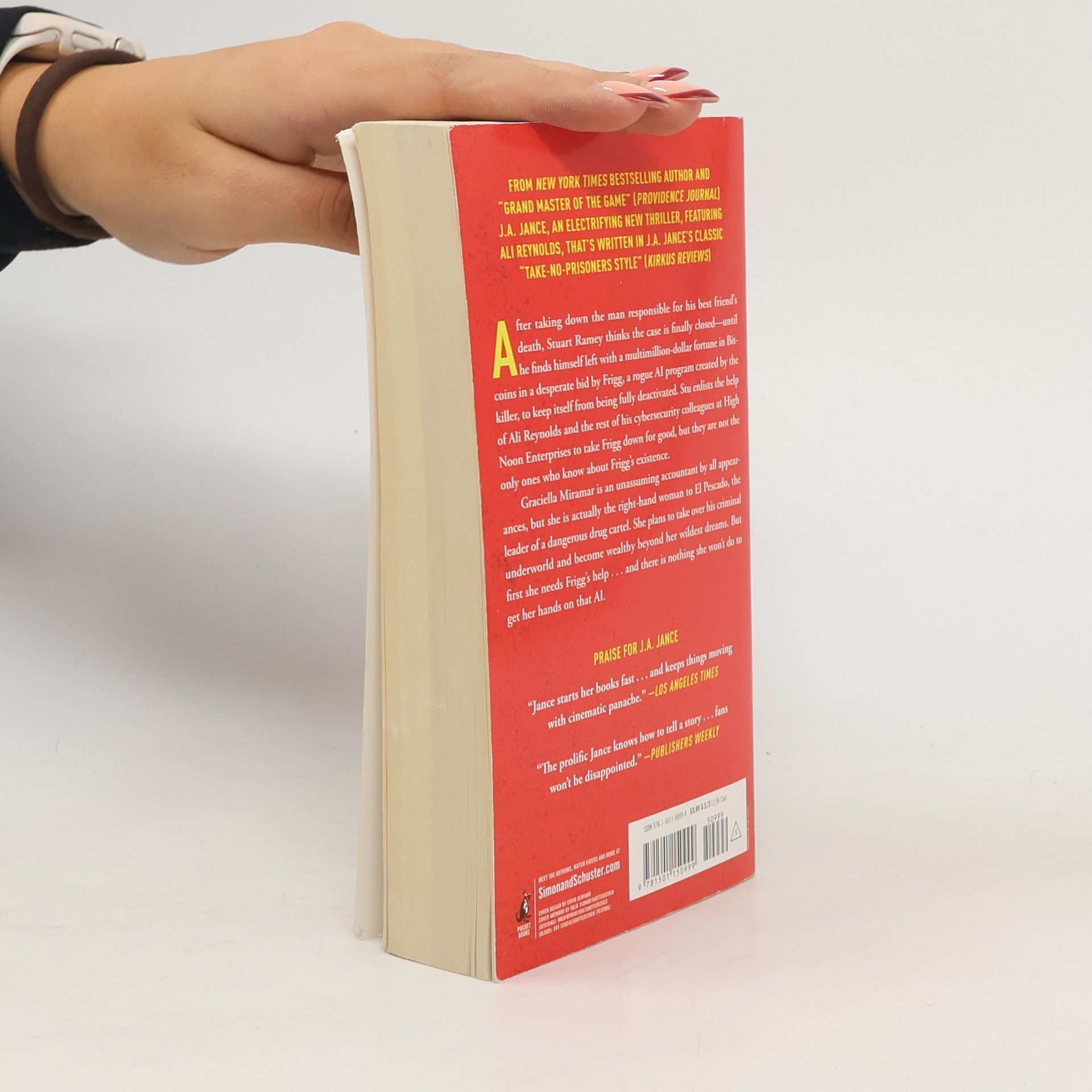 The New York Times bestselling author J.A. Jance returns with the thirteenth pulse-pounding thriller in the Ali Reynolds series. After taking down the man responsible for his best friend’s death, Stuart Ramey believes the case is finally closed. That is, until Stu discovers he’s been left with a multimillion dollar fortune in Bitcoin in a desperate attempt by Frigg, a rogue A.I. program created by the killer, to keep itself from being fully deactivated. To take Frigg down for good, Stu enlists the help of Ali Reynolds and the rest of his cyber security colleagues at High Noon Enterprises. But they are not the only ones who know about Frigg’s existence. Graciella Miramar, an unassuming accountant to all appearances, is actually the right-hand woman to El Pescado , the leader of a dangerous drug cartel. She’ll do anything to get her hands on that program. With Frigg’s help, Graciella hopes to take over El Pescado’s criminal underworld and become wealthy beyond her wildest dreams. But Stu—and El Pescado and his henchmen—may not be so easily defeated.