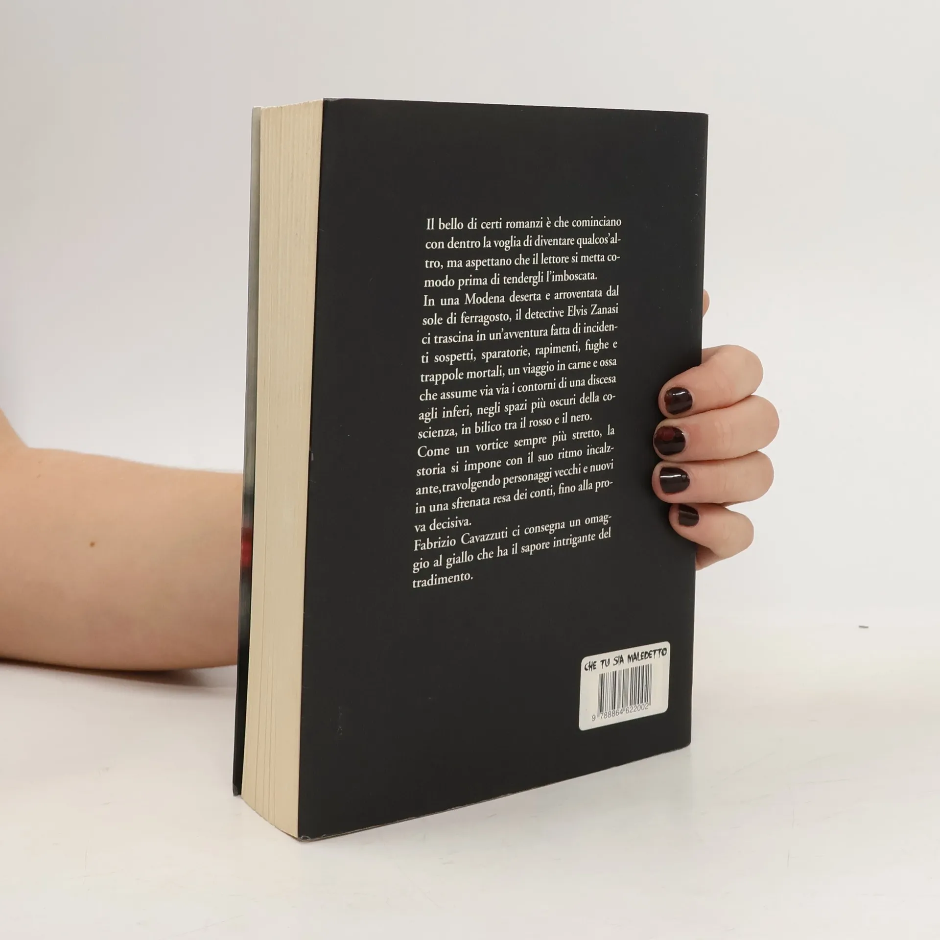 In una Modena deserta e arroventata dal sole di ferragosto, il detective Elvis Zanasi ci trascina in un'avventura fatta di incidenti sospetti, sparatorie, rapimenti, fughe e trappole mortali, un viaggio in carne e ossa che assume via via i contorni di una discesa agli inferi, negli spazi più oscuri della coscienza, in bilico tra il rosso e il nero. Come un vortice sempre più stretto, la storia si impone con il suo ritmo incalzante, travolgendo personaggi vecchi e nuovi in una sfrenata resa dei conti, fino alla prova decisiva.