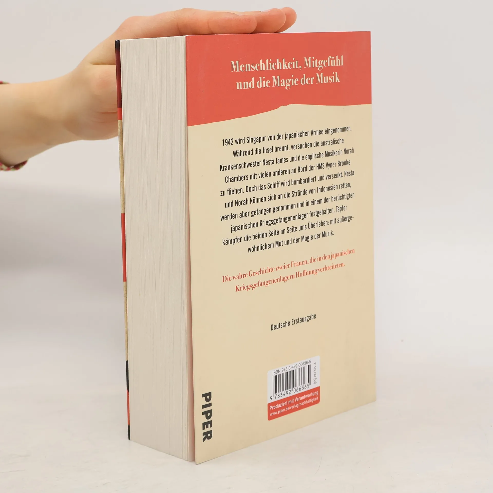 Menschlichkeit, Mitgefühl und die Magie der Musik 1942 wird Singapur von der japanischen Armee eingenommen. Während die Insel brennt, versuchen die australische Krankenschwester Nesta James und die englische Musikerin Norah Chambers mit vielen anderen an Bord der HMS Vyner Brooke zu fliehen. Doch das Schiff wird bombardiert und versenkt. Nesta und Norah können sich an die Strände von Indonesien retten, werden aber gefangen genommen und in einem der berüchtigten japanischen Kriegsgefangenenlager festgehalten. Tapfer kämpfen die beiden Seite an Seite ums Überleben: mit außergewöhnlichem Mut und der Magie der Musik.