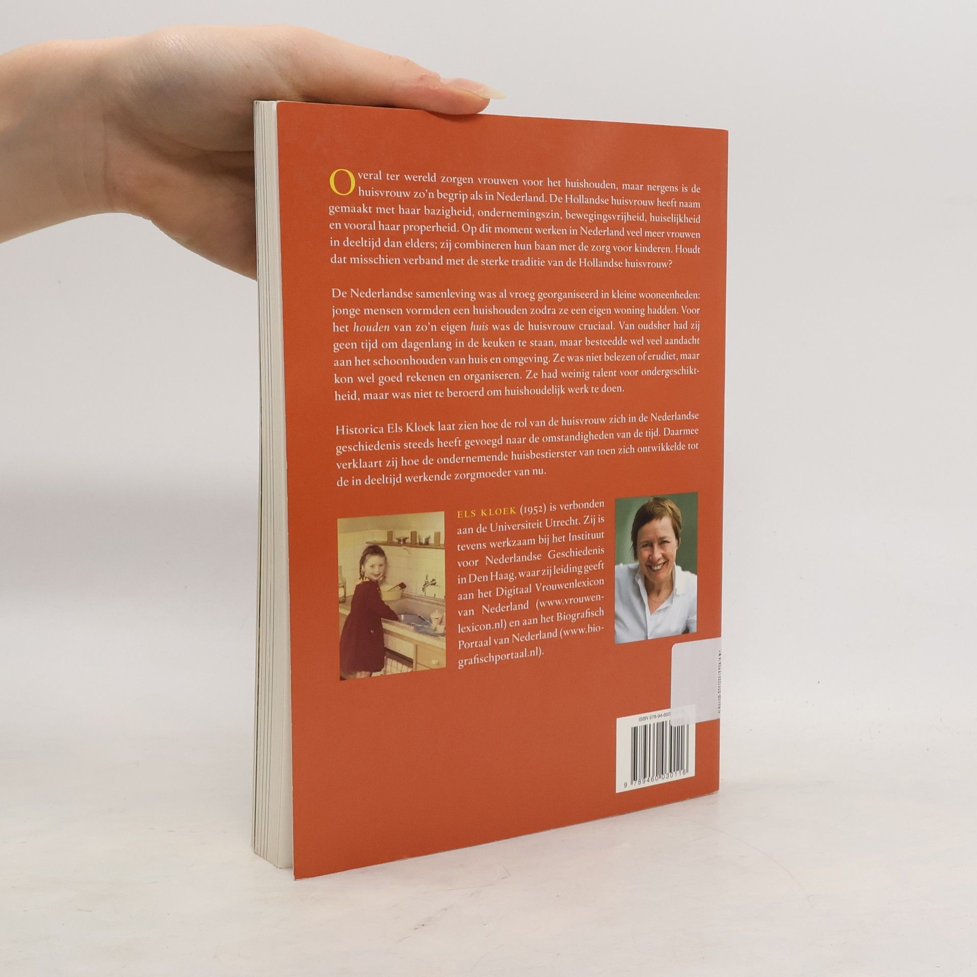 Overal ter wereld zorgen vrouwen voor het huishouden, maar nergens is de huisvrouw zo'n begrip als in Nederland. De Hollandse huisvrouw heeft naam gemaakt met haar bazigheid, ondernemingszin, bewegingsvrijheid, huiselijkheid en vooral haar properheid. Op dit moment werken in Nederland veel meer vrouwen in deeltijd dan elders; zij combineren hun baan met de zorg voor de kinderen. Houdt dat misschien verband met de sterke traditie van de Hollandse huisvrouw?De Nederlandse samenleving was al vroeg georganiseerd in kleine wooneenheden: jonge mensen vormden een huishouden zodra ze een eigen woning hadden. Voor het houden van zo'n eigen huis was de huisvrouw cruciaal. Van oudsher had zij geen tijd om dagenlang in de keuken te staan, maar besteedde wel veel aandacht aan het schoonhouden van huis en omgeving. Ze was niet belezen of erudiet, maar kon wel goed rekenen en organiseren. Ze had weinig talent voor ondergeschiktheid, maar was niet te beroerd om huishoudelijk werk te doen.Historica Els Kloek laat zien hoe de rol van de huisvrouw zich in de Nederlandse geschiedenis steeds heeft gevoegd naar de omstandigheden van de tijd. Daarmee verklaart zij hoe de ondernemende huisbestierster van toen zich ontwikkelde tot de in deeltijd werkende zorgmoeder van nu.Els Kloek (1952) is verbonden aan de Universiteit Utrecht. Zij is tevens werkzaam bij het Instituut voor Nederlandse Geschiedenis in Den Haag, waar zij leiding geeft aan het Digitaal Vrouwenlexicon van Nederland (www.vrouwenlexicon.nl) en aan het Biografisch Portaal van Nederland (www.biografischportaal.nl)