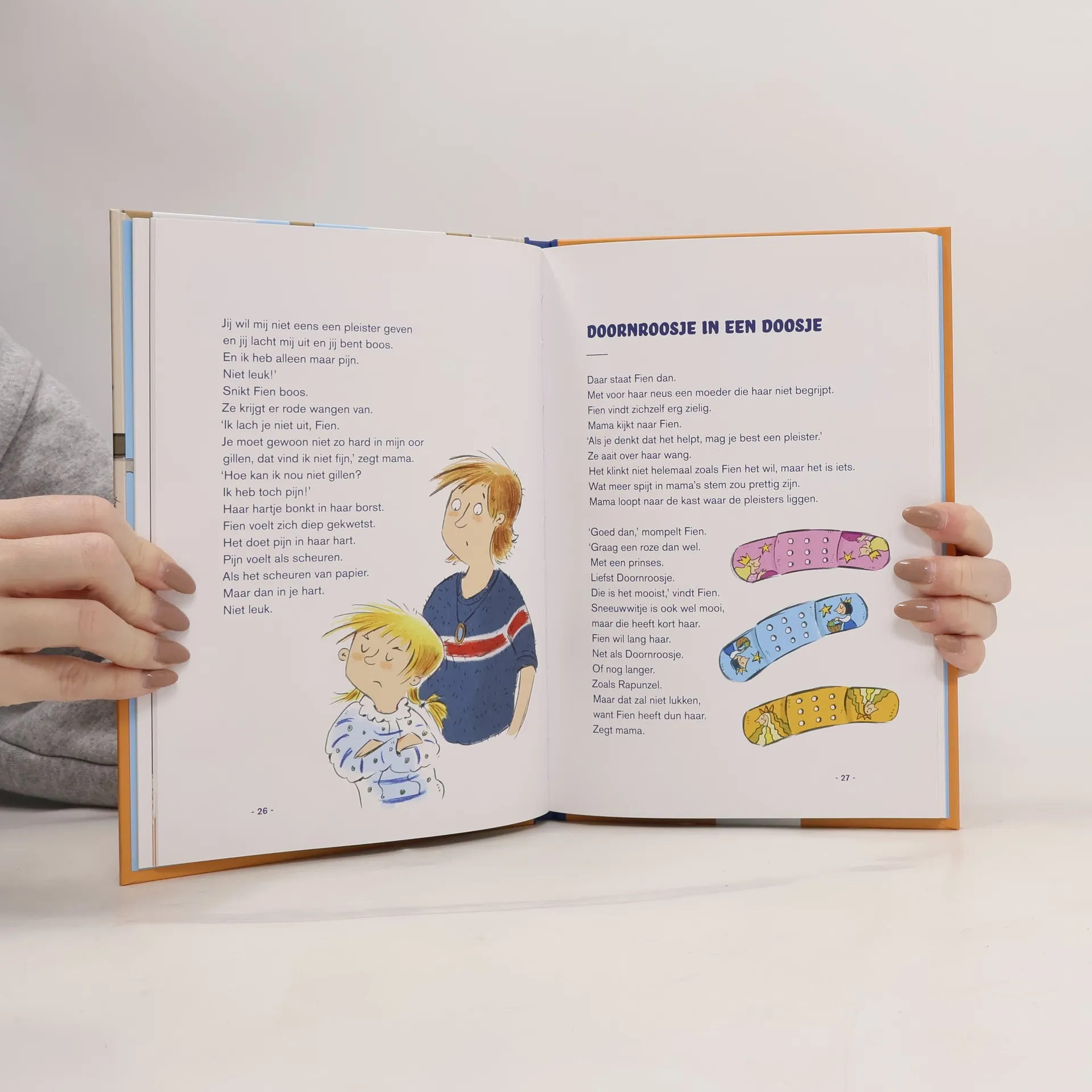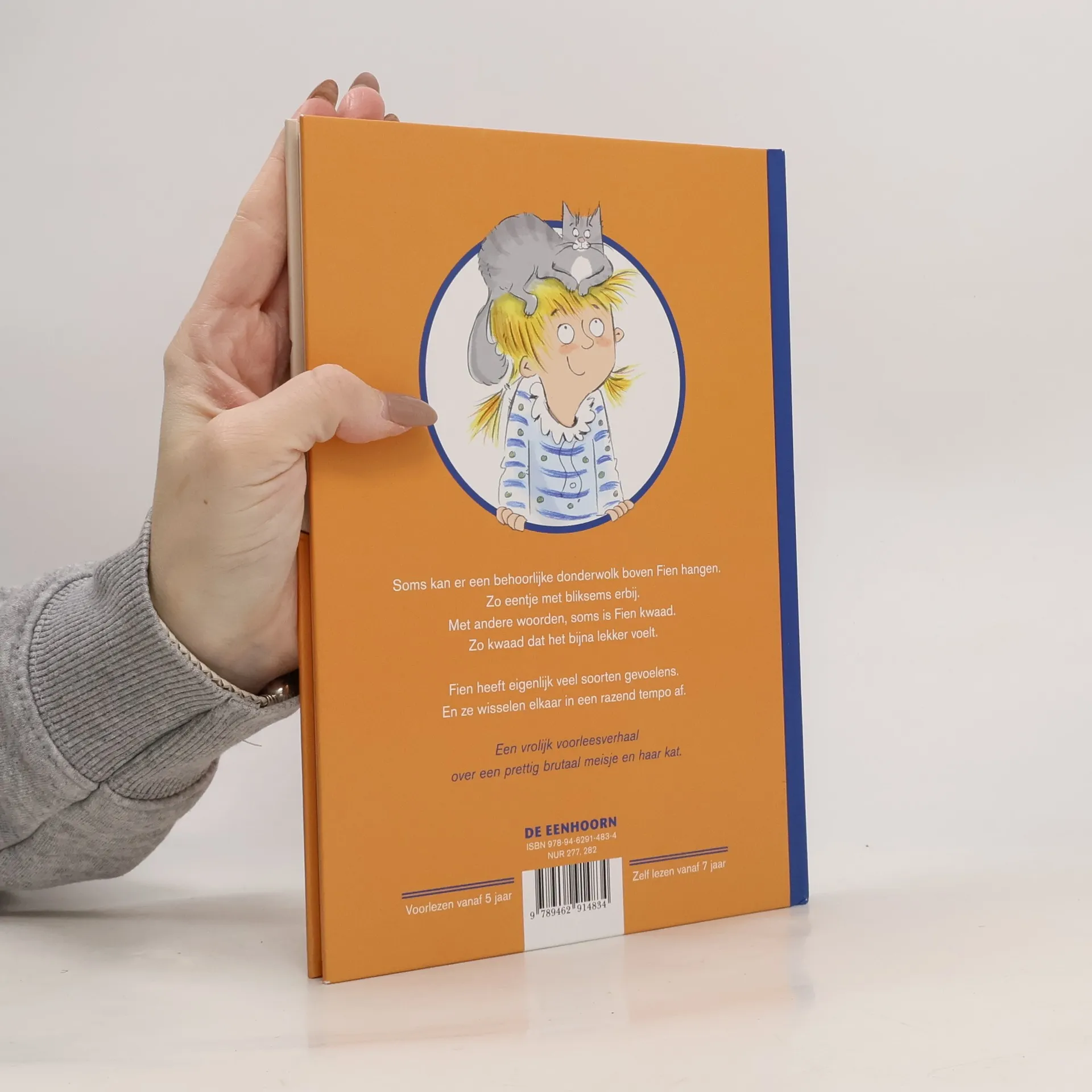Fien (5) is blij, want ze mag zomaar een dag thuis blijven omdat ze zo moe is. Maar soms is Fien erg boos, vooral als mama niet naar haar luistert. Dan hangt er een donderwolk boven haar hoofd. Fien heeft ook wel eens pijn, en ze kan ook héél koppig zijn. Met grappige kleurenillustraties. Voorlezen vanaf ca. 5 jaar, zelf lezen vanaf ca. 7 jaar.
