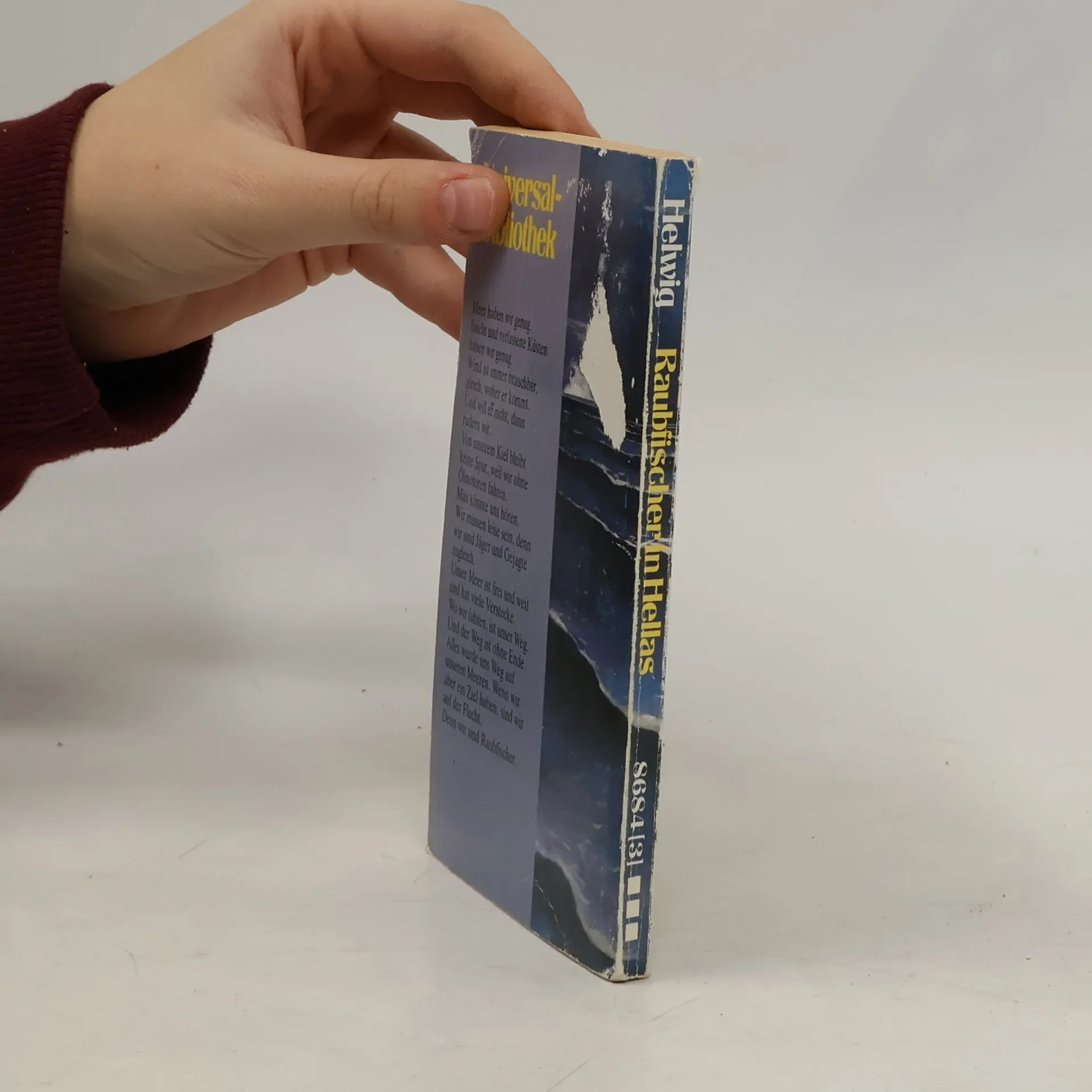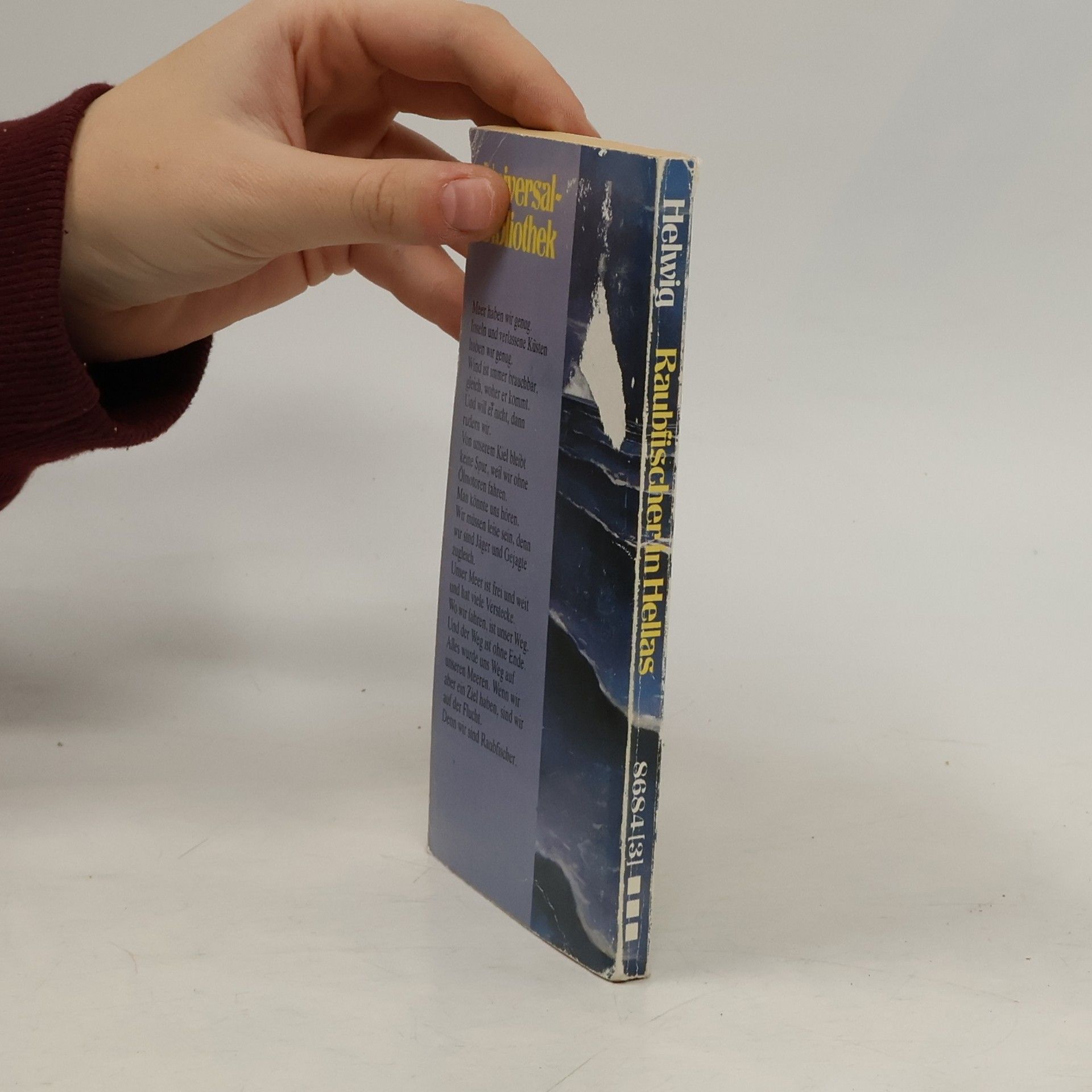 1. Teil der Hellas-Trilogie von Werner HelwigMeer haben wir genug. Inseln und verlassene Küsten haben wir genug. Wind ist immer brauchbar, gleich, woher er kommt. Und will er nicht, dann rudern wir. Von unserem Kiel bleibt keine Spur, weil wir ohne Ölmotoren fahren. Man könnte uns hören. Wir müssen leise sein, denn wir sind Jäger und Gejagte zugleich. Unser Meer ist frei und weit und hat viele Verstecke. Wo wir fahren, ist unser Weg. Und der Weg ist ohne Ende. Alles wurde uns Weg auf unseren Meeren. Wenn wir aber ein Ziel haben, sind wir auf der Flucht. Denn wir sind Raubfischer.(Dieser Text bezieht sich auf eine frühere Ausgabe.)
