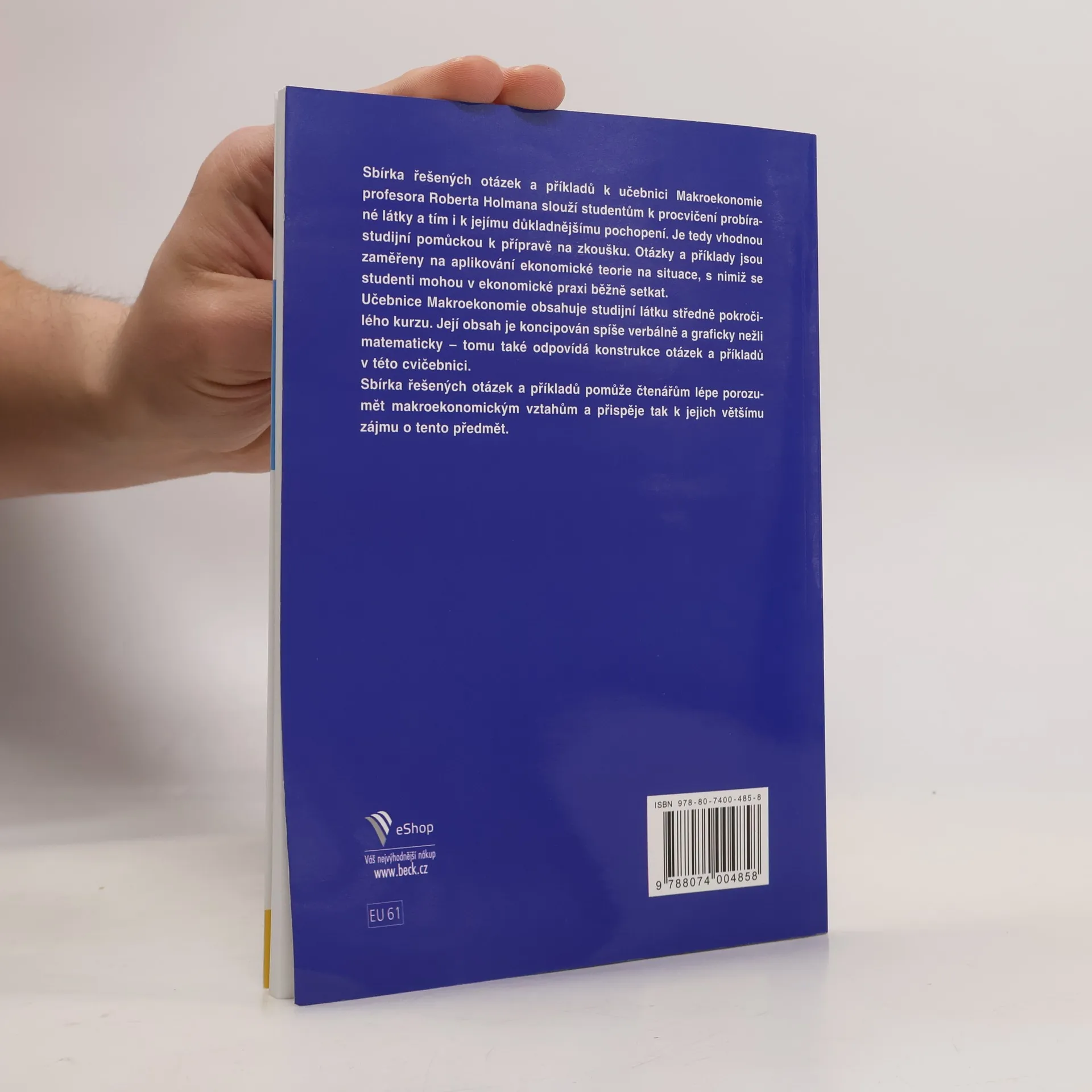 Sbírka řešených otázek a příkladů k učebnici Makroekonomie profesora Roberta Holmana slouží studentům k procvičení probírané látky a tím i k jejímu důkladnějšímu pochopení. Je tedy vhodnou studijní pomůckou k přípravě na zkoušku. Otázky a příklady jsou zaměřeny na aplikování ekonomické teorie na situace, s nimiž se studenti mohou v ekonomické praxi běžně setkat. Učebnice Makroekonomie obsahuje studijní látku středně pokročilého kurzu. Její obsah je koncipován spíše verbálně a graficky nežli matematicky – tomu také odpovídá konstrukce otázek a příkladů v této cvičebnici. Sbírka řešených otázek a příkladů pomůže čtenářům lépe porozumět makroekonomickým vztahům a přispěje tak k jejich většímu zájmu o tento předmět.