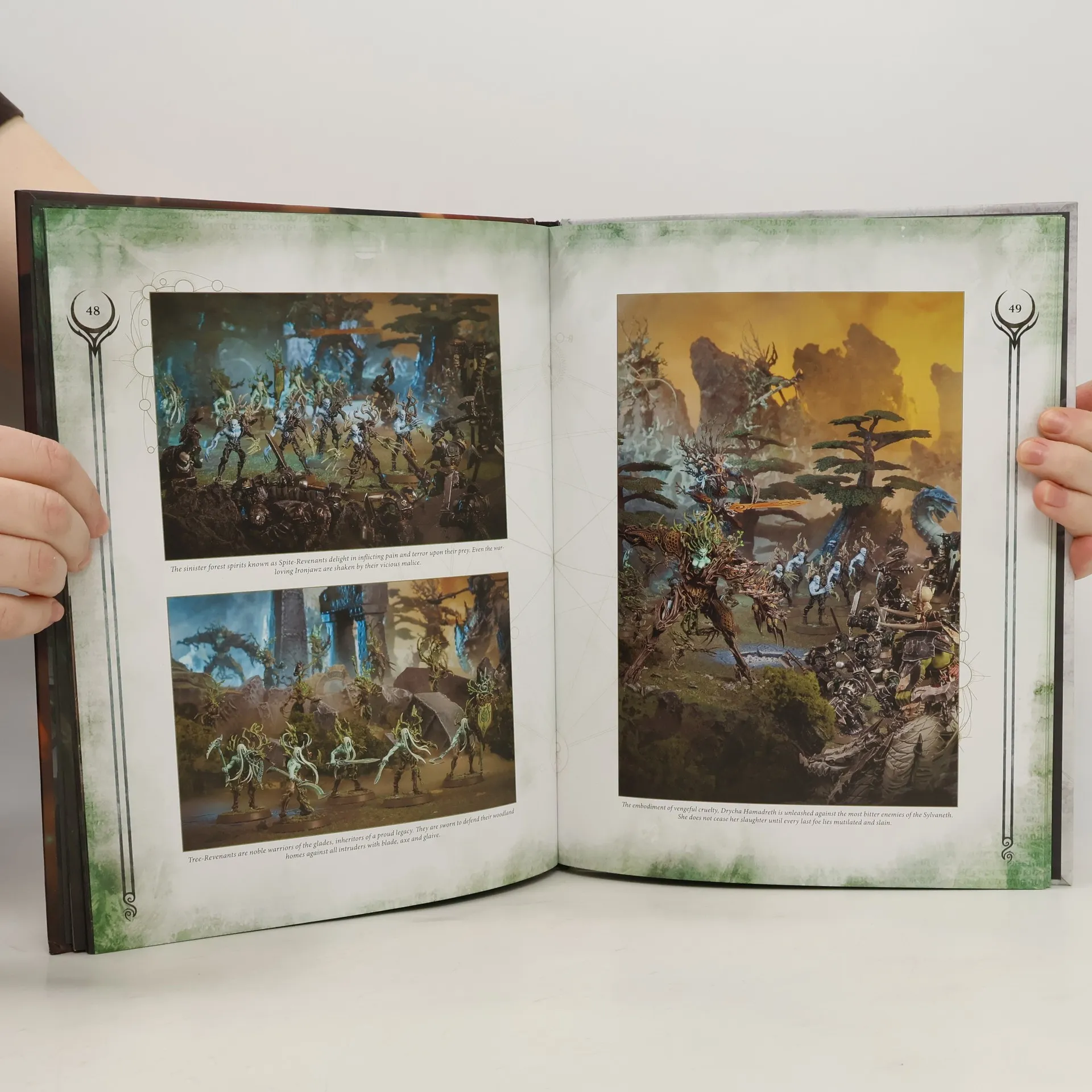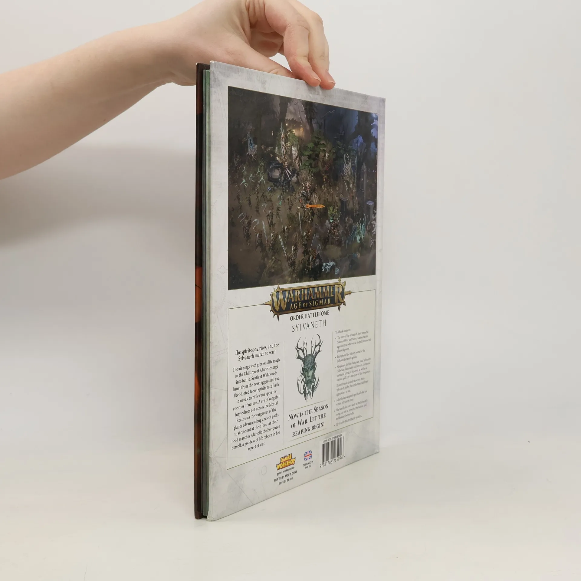 Strange and fey are the Sylvaneth, children of the life goddess Alarielle. These forest spirits have long dwelt in the woods of the Mortal Realms, protecting places of power from malign trespassers and the warping touch of Chaos. As the effects of the Everqueen’s Rite of Life are felt across the cosmos, the Sylvaneth find themselves once more on the offensive. With vital sorcery, enchanted blade, and oaken talon, they will ensure that the power of their goddess’s great ritual takes hold across all lands.This book contains everything you need to know to lead Alarielle's verdant children to victory in your games of Warhammer Age of Sigmar, and discover their place in the Mortal Realms. Learn the long history of these immortal guardians of Ghyran, explore the complex ecosystem that governs the forest folk, and meet the mysterious glades that wage war in the name of Life itself.This 104-page hardback book contains:- Twisting thickets of background information on the Sylvaneth, including their history, curious arboreal traditions, and legendary figures like Drycha Hamadreth and Alarielle the Everqueen.