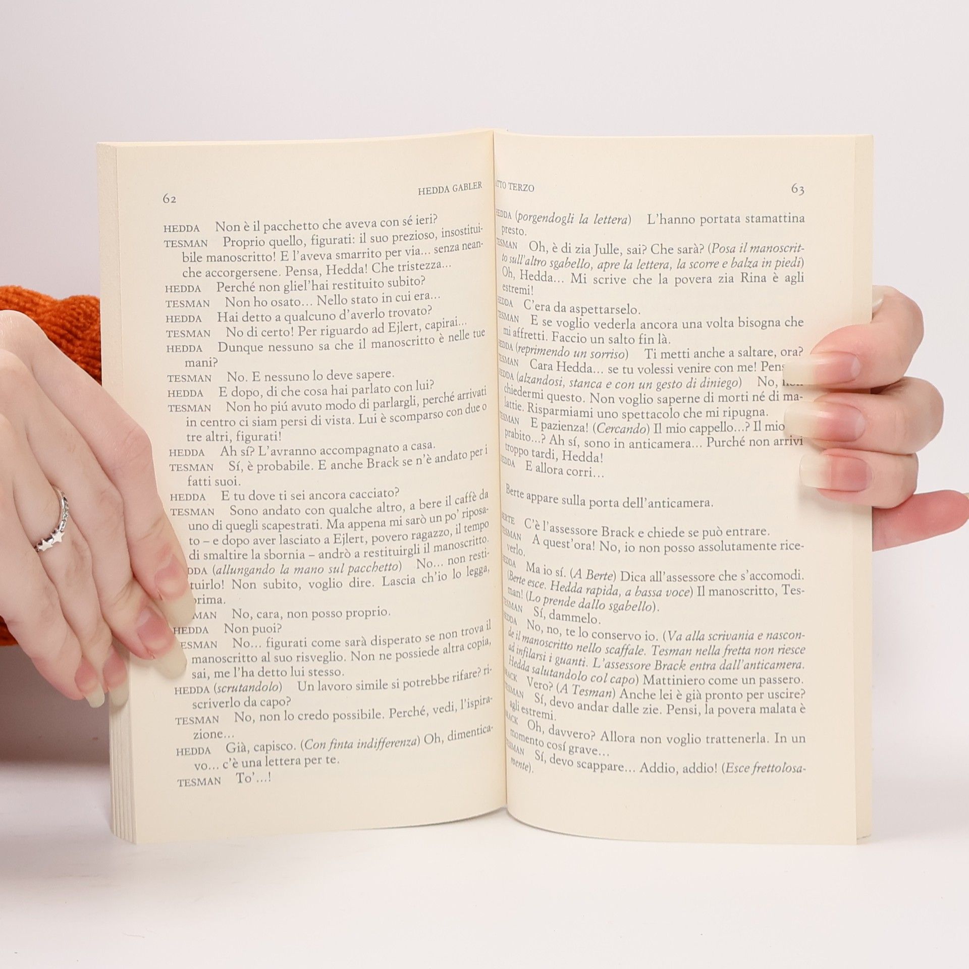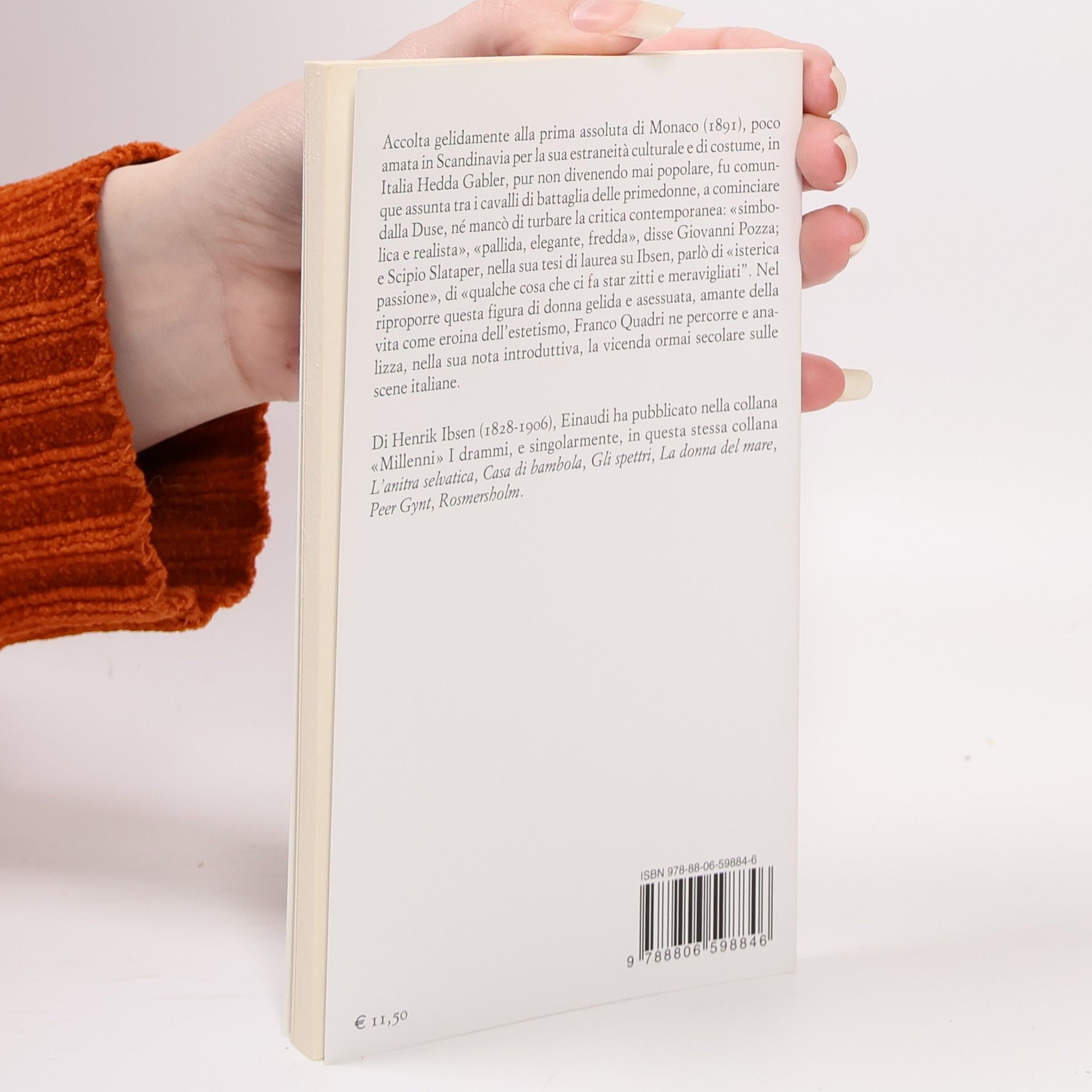 Accolta gelidamente alla prima assoluta di Monaco (1891), poco amata in Scandinavia per la sua estraneità culturale e di costume, in Italia <i>Hedda Gabler</i>, pur non divenendo mai popolare, fu comunque assunta tra i cavalli di battaglia delle primedonne, a cominciare dalla Duse, né mancò di turbare la critica contemporanea: «simbolica e realista», «pallida elegante, fredda», disse Giovanni Pozza; e Scipio Slataper, nella sua tesi di laurea su <i>Ibsen</i>, parlò di «isterica passione», di «qualche cosa che ci fa star zitti e meravigliati». Nel riproporre questa figura di donna gelida e asessuata, amante della vita come eroina dell'estetismo, Franco Quadri ne percorre e analizza, nella sua nota introduttiva, la vicenda ormai secolare sulle scene italiane.