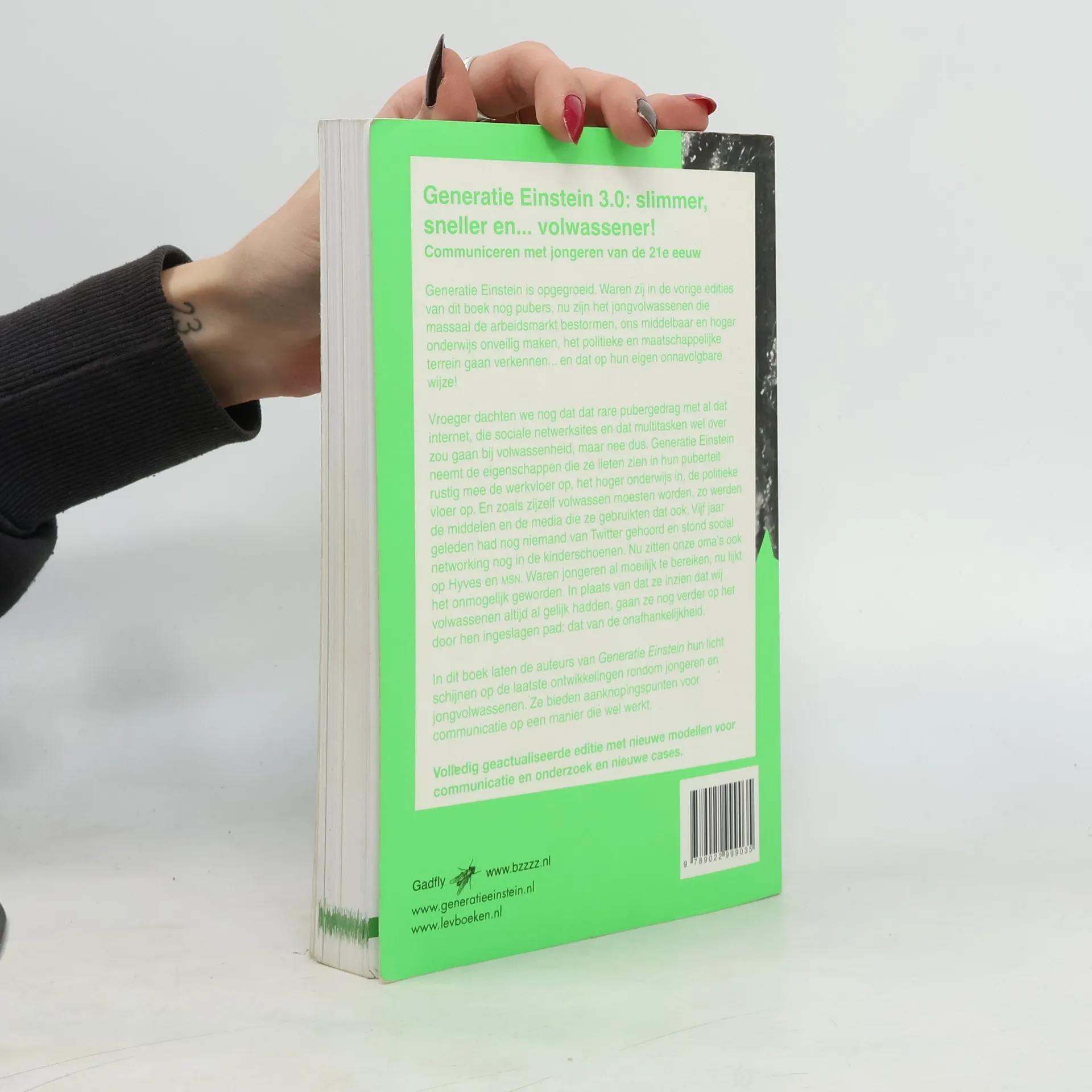 Generatie Einstein 3.0: slimmer, socialer en... volwassener!Communiceren met jongeren van de 21e eeuw.Generatie Einstein is opgegroeid. Waren zij in de vorige edities van dit boek nog pubers, nu zijn het jongvolwassenen die massaal de arbeidsmarkt bestormen, ons middelbaar en hoger onderwijs onveilig maken, het politieke en maatschappelijke terrein gaan verkennen... en dat op hun eigen onnavolgbare wijze!Vroeger dachten we nog dat dat rare pubergedrag met al dat internet, die sociale netwerksites en dat multitasken wel over zou gaan bij volwassenheid, maar nee dus.Generatie Einstein neemt de eigenschappen die ze lieten zien in hun puberteit rustig mee de werkvloer op, het hoger onderwijs in, de politieke vloer op. En zoals zijzelf volwassen moesten worden, zo werden de middelen en de media die ze gebruikten dat ook. Vijf jaar geleden had nog niemand van Twitter gehoord en stond social networking nog in de kinderschoenen. Nu zitten onze omaÕs ook op Hyves en MSN. Waren jongeren al moeilijk te bereiken, nu lijkt het onmogelijk geworden. In plaats van dat ze inzien dat wij volwassenen altijd al gelijk hadden, gaan ze nog verder op het door hen ingeslagen dat van de onafhankelijkheid.In dit boek laten de auteurs vanGeneratie Einstein hun licht schijnen op de laatste ontwikkelingen rondom jongeren en jongvolwassenen. Ze bieden aanknopingspunten voor communicatie op een manier die wel werkt.Volledig geactualiseerde editie met nieuwe modellen voor communicatie en onderzoek en nieuwe cases.