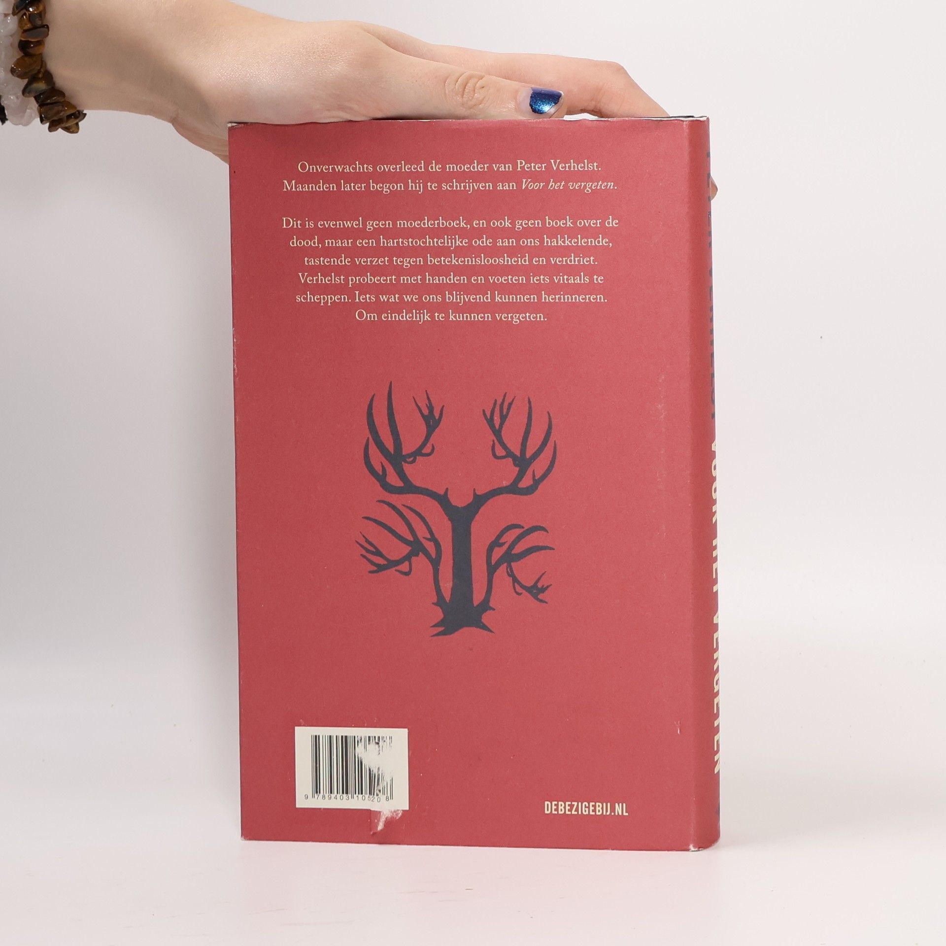 Totaal onverwacht overlijdt de moeder van Peter Verhelst. Hij is getuige van de rouw van zijn vader en probeert daarbij ook zelf een weg te vinden in een proces vol rauw-realistische, mythische, zintuiglijke, essayistische en poëtische verhalen. Haast krampachtig graaft hij naar herinneringen. Tegelijk opent Verhelst op volstrekt originele wijze nieuwe werelden waarin edelherten, vissen, kunstwerken, witte katten en Japanse tuinen huizen.00'Voor het vergeten' is geen moederboek, en ook geen boek over de dood, maar een hartstochtelijke ode aan ons hakkelende, tastende verzet tegen betekenisloosheid en verdriet. Verhelst probeert met handen en voeten iets vitaals te scheppen. Iets wat we ons blijvend kunnen herinneren. Om eindelijk te kunnen vergeten.