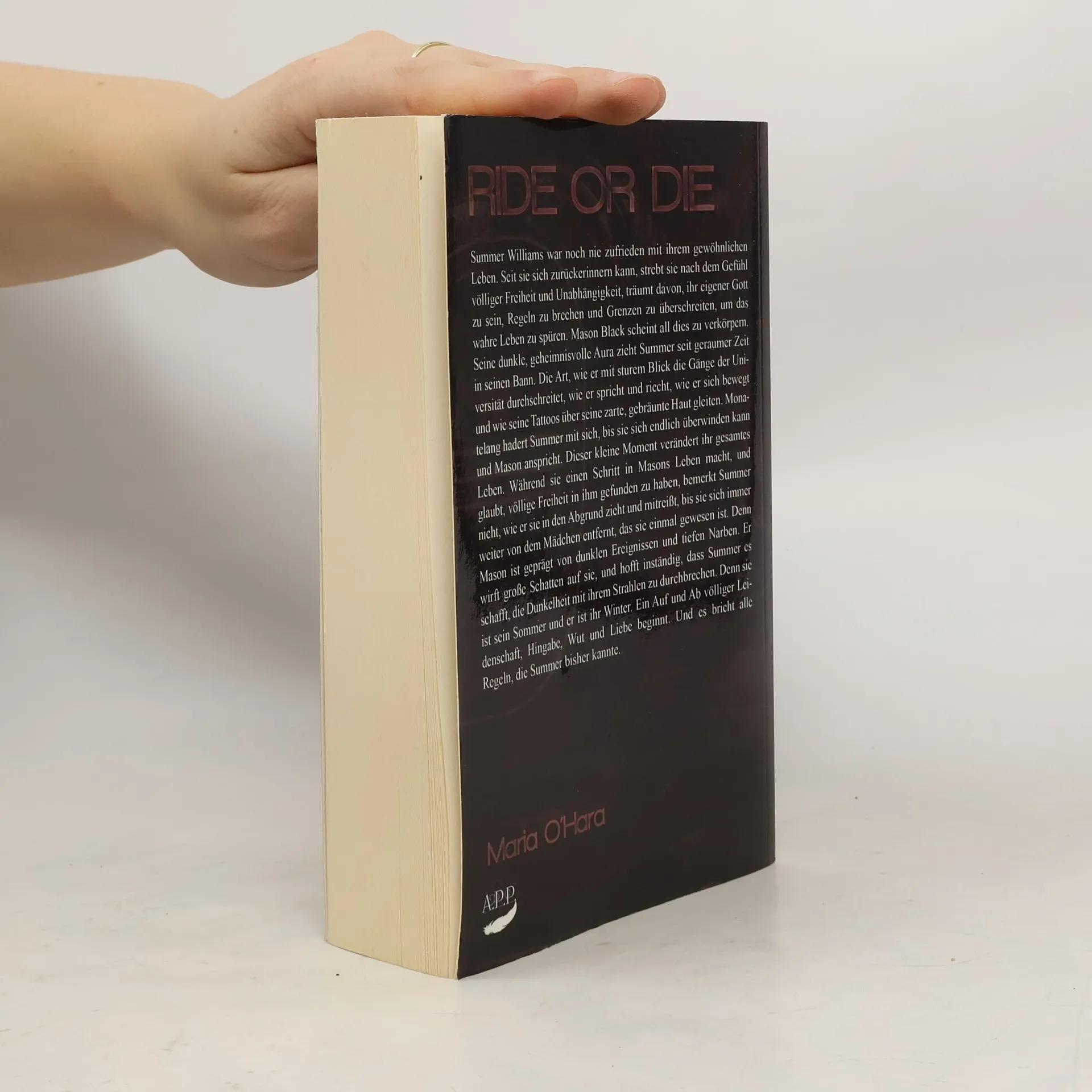 Rido or Die - Obsession Summer Williams war noch nie zufrieden mit ihrem gewöhnlichen Leben. Seit sie sich zurückerinnern kann, strebt sie nach dem Gefühl völliger Freiheit und Unabhängigkeit, träumt davon, ihr eigener Gott zu sein, Regeln zu brechen und Grenzen zu überschreiten, um das wahre Leben zu spüren. Mason Black scheint all dies zu verkörpern. Seine dunkle, geheimnisvolle Aura zieht Summer seit geraumer Zeit in seinen Bann. Die Art, wie er mit sturem Blick die Gänge der Universität durchschreitet, wie er spricht und riecht, wie er sich bewegt und wie seine Tattoos über seine zarte, gebräunte Haut gleiten. Monatelang hadert Summer mit sich, bis sie sich endlich überwinden kann und Mason anspricht. Dieser kleine Moment verändert ihr gesamtes Leben. Während sie einen Schritt in Masons Leben macht, und glaubt, völlige Freiheit in ihm gefunden zu haben, bemerkt Summer nicht, wie er sie in den Abgrund zieht und mitreißt, bis sie sich immer weiter von dem Mädchen entfernt, das sie einmal gewesen ist. Denn Mason ist geprägt von dunklen Ereignissen und tiefen Narben. Er wirft große Schatten auf sie, und hofft inständig, dass Summer es schafft, die Dunkelheit mit ihrem Strahlen zu durchbrechen. Denn sie ist sein Sommer und er ist ihr Winter. Ein Auf und Ab völliger Leidenschaft, Hingabe, Wut und Liebe beginnt. Und es bricht alle Regeln, die Summer bisher kannte.