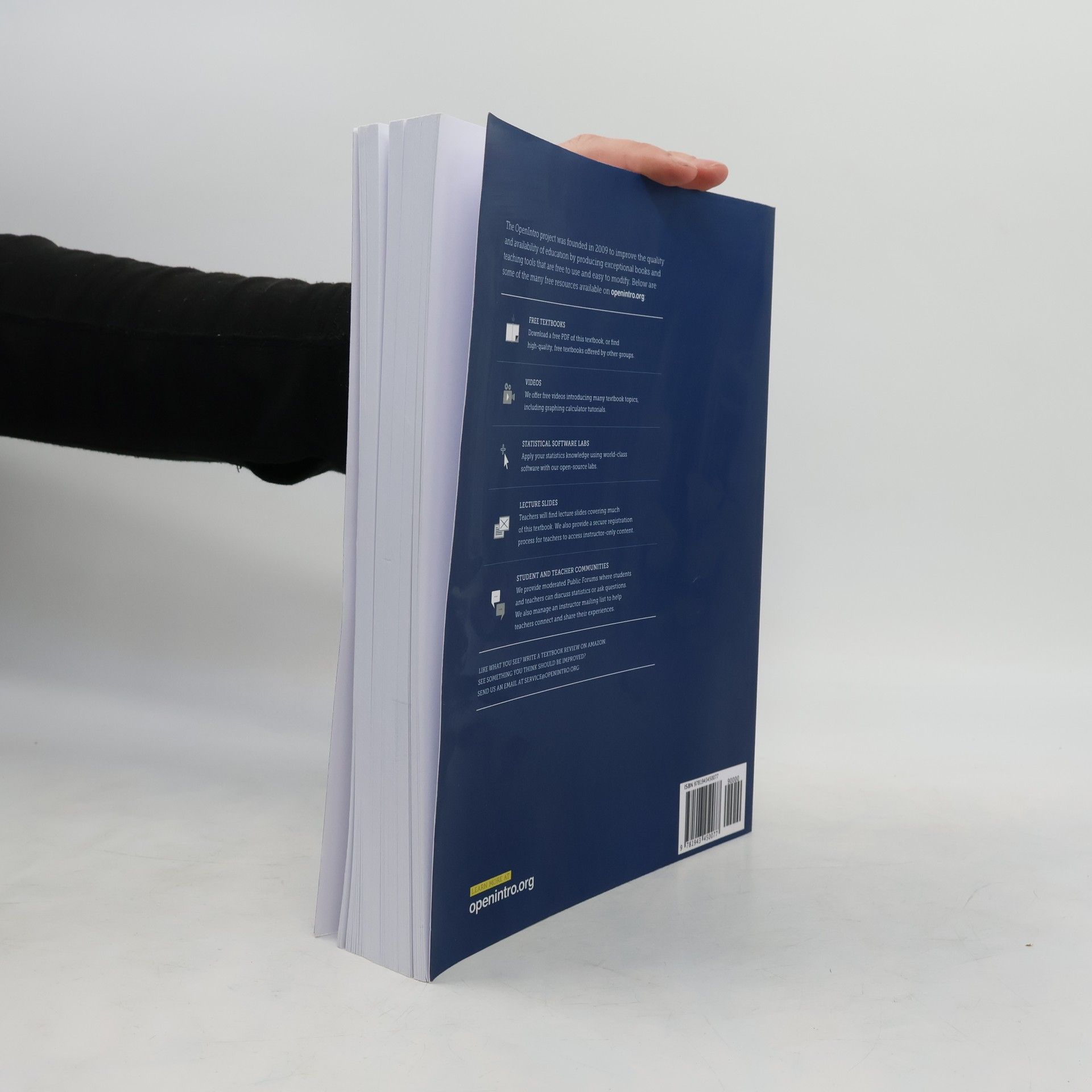 The OpenIntro project was founded in 2009 to improve the quality and availability of education by producing exceptional books and teaching tools that are free to use and easy to modify. Our inaugural effort is OpenIntro Statistics. Probability is optional, inference is key, and we feature real data whenever possible. Files for the entire book are freely available at openintro.org, and anybody can purchase a paperback copy from amazon.com for under $10. The future for OpenIntro depends on the involvement and enthusiasm of our community. Visit our website, openintro.org. We provide free course management tools, including an online question bank, utilities for creating course quizzes, and many other helpful resources. CERTAIN CONTENT THAT APPEARS ON THIS SITE COMES FROM AMAZON SERVICES LLC. THIS CONTENT IS PROVIDED ‘AS IS’ AND IS SUBJECT TO CHANGE OR REMOVAL AT ANY TIME. Can’t find it here? Search Amazon.com Search: All Products Apparel & AccessoriesBabyBeautyBooksCamera & PhotoCell Phones & ServiceClassical MusicComputersComputer & Video GamesDVDElectronicsGourmet FoodHome & GardenMiscellaneousHealth & Personal CareJewelry & WatchesKitchen & HousewaresMagazine SubscriptionsMusicMusical InstrumentsSoftwareSports & OutdoorsTools & HardwareToys & GamesVHS Keywords: