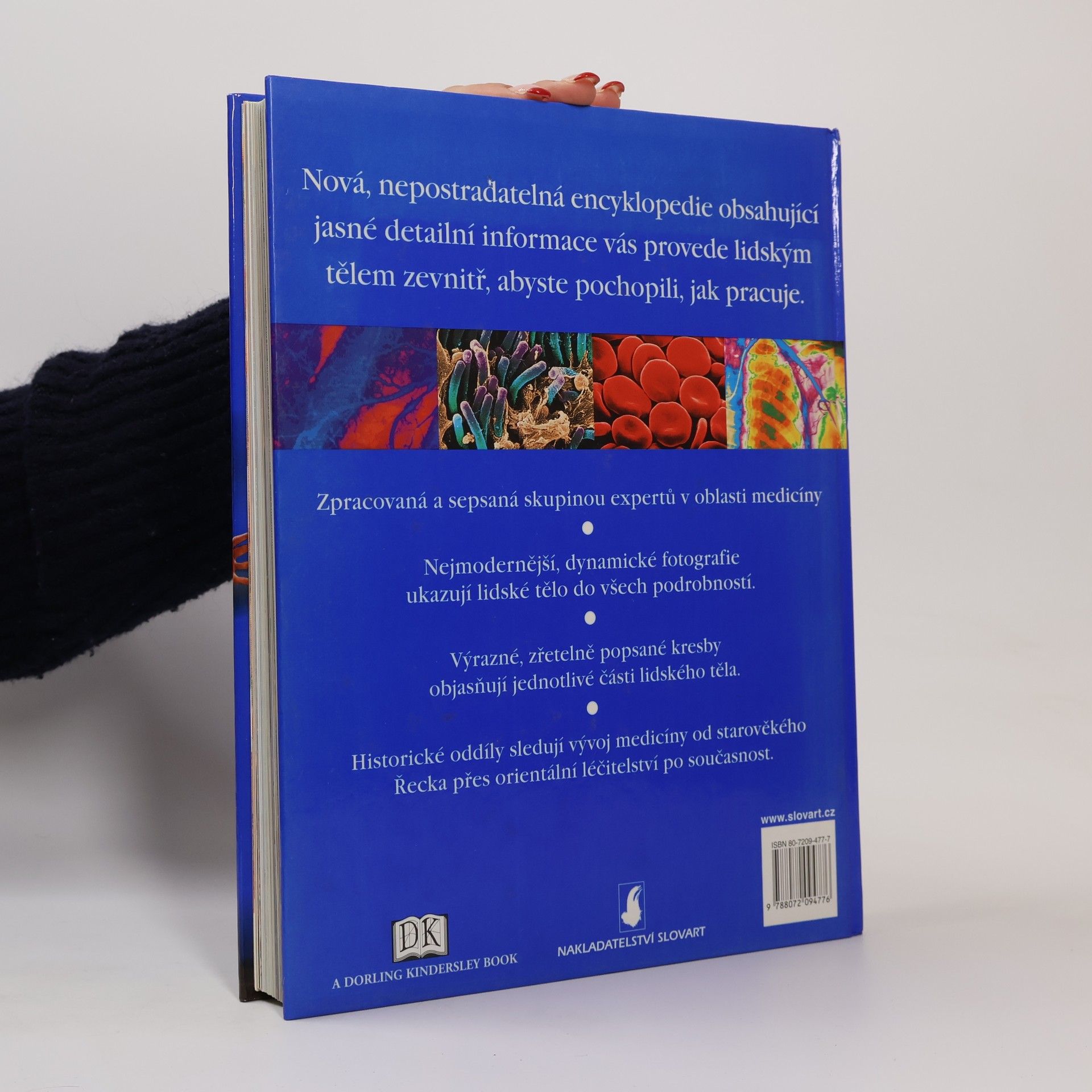 Nová encyklopedie obsahující jasné, detailní informace usnadňující porozumění fungování lidského těla. Napsáno týmem odborníků. Dynamické, nejmodernější fotografie odhalují lidské tělo v detailních záběrech. Příběh fascinující historie medicíny od antického Řecka po současnost.
