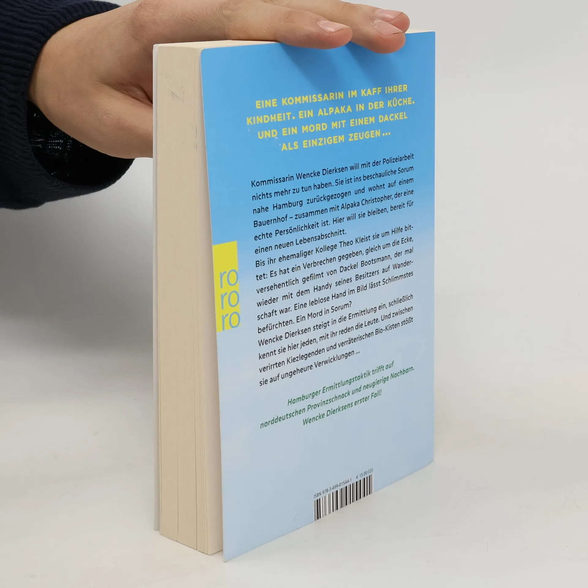 Kommissarin Wencke Dierksen will mit der Polizeiarbeit nichts mehr zu tun haben, so viel ist sicher. Sie ist ins beschauliche Sorum nahe Hamburg zurückgezogen und wohnt auf dem Bauernhof, den ihr Onkel ihr vererbt hat – zusammen mit Alpaka Christopher, der eine echte Persönlichkeit ist. Hier will sie bleiben, bereit für einen neuen Lebensabschnitt. Bis ihr ehemaliger Kollege Theo Kleist sie um Hilfe bittet: Es hat ein Verbrechen gegeben, versehentlich gefilmt von Dackel Bootsmann, der mal wieder mit dem Handy seines Besitzers auf Wanderschaft war. Eine leblose Hand im Bild lässt Schlimmstes befürchten. Ein Mord in Sorum? Wencke Dierksen steigt in die Ermittlung ein, schließlich kennt sie hier jeden, mit ihr reden die Leute. Und zwischen verirrten Kiezlegenden und verräterischen Bio-Kisten stößt sie auf ungeheure Verwicklungen …