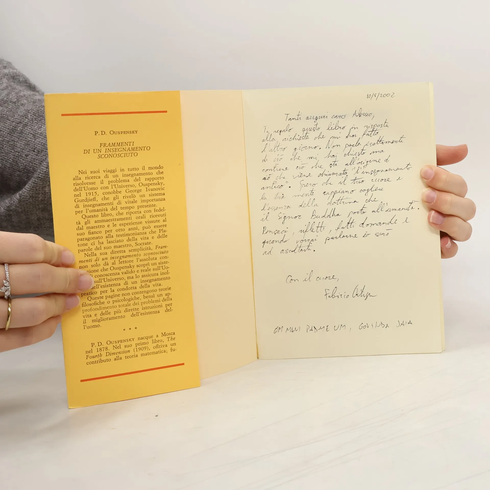 Nel corso dei suoi viaggi in Europa, in Egitto e in Oriente, alla ricerca di un insegnamento che risolvesse il problema delle relazioni dell’uomo con l’universo, Ouspensky conobbe George Ivanovitch Gurdjieff di cui divenne discepolo. Questo libro, scritto con diretta semplicità, è un resoconto degli otto anni in cui Ouspensky fu discepolo di Gurdjieff divenendo per lui quello che Platone fu per Socrate. Queste pagine non contengono teorie filosofiche o psicologiche bensì un approfondimento totale dei problemi della vita e delle più dirette istruzioni per il miglioramento dell’esistenza dell’uomo.