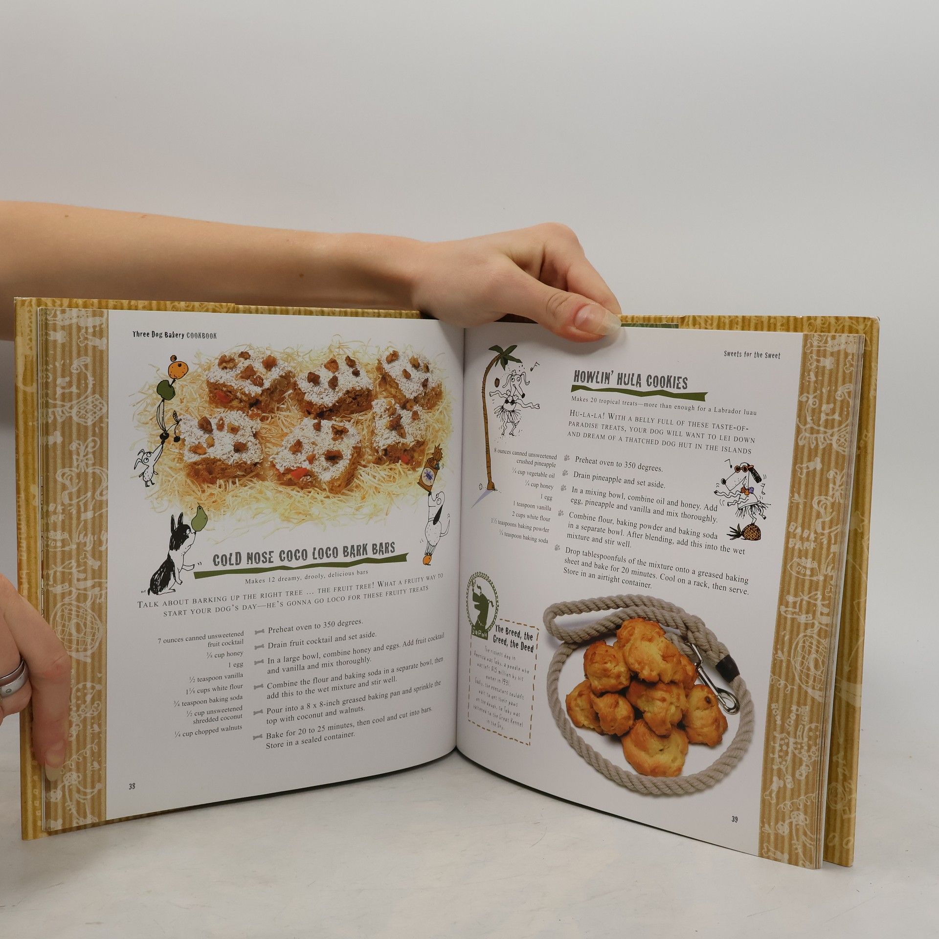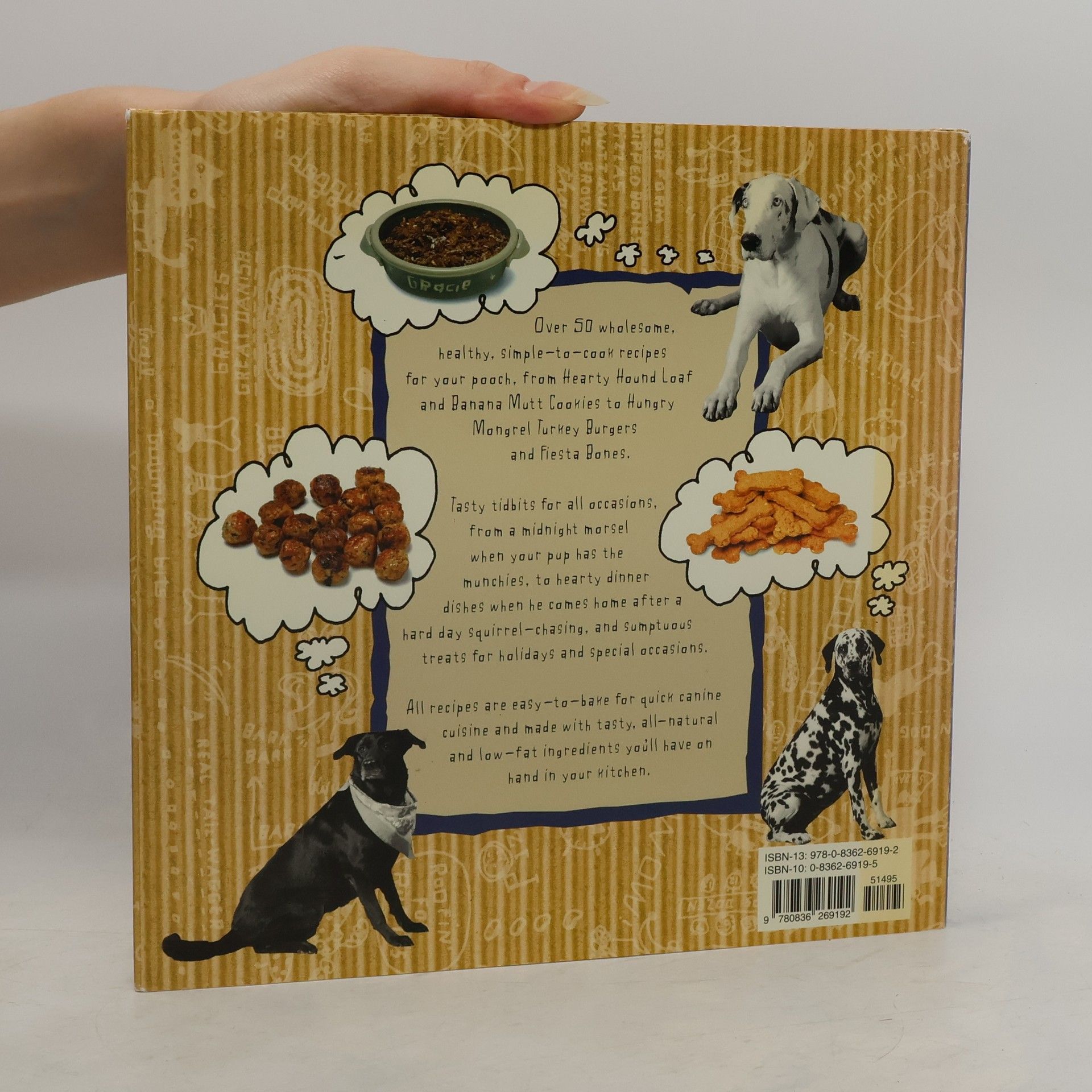 Three Dog Bakery stores are legendary. Stocked with cleverly named canine confections--from SnickerPoodles to Scotty Biscotti to Big Scary Kitties -- the pooch patisserie has grown into an international operation, featuring its fresh-baked, all-natural bakery treats for dogs.Three Dog Bakery's 1996 autobiography, Short Tails and Treats from Three Dog Bakery, tells all about how Dan Dye and Mark Beckloff, with inspiration from their three dogs, came to run 12 retail bakeries around the world, as well as wholesale and mail-order divisions. Now, Three Dog Bakery is sharing its secrets with dog devotees everywhere. With this new Three Dog Bakery Cookbook, readers will be able to concoct the kind of tasty treats that canines crave.Featuring more than 50 recipes--from Banana Mutt Cake to Great Danish, and from Fiesta Bones to Gracie's Megapizza--the Three Dog Bakery Cookbook will have dogs salivating like Pavlov's proverbial pet. Full-color finished dish photographs give human cooks a look at what they're making, while health tips and canine trivia sprinkled throughout the book both educate and entertain.Arranged into six chapters, Three Dog Bakery Cookbook covers the dog-snack gamut, from savory morsels to carob-coated treats, from luscious entrees to chewy soft-baked confections. Readers will find recipes for all doggie occasions, from birthdays to obedience school graduation.