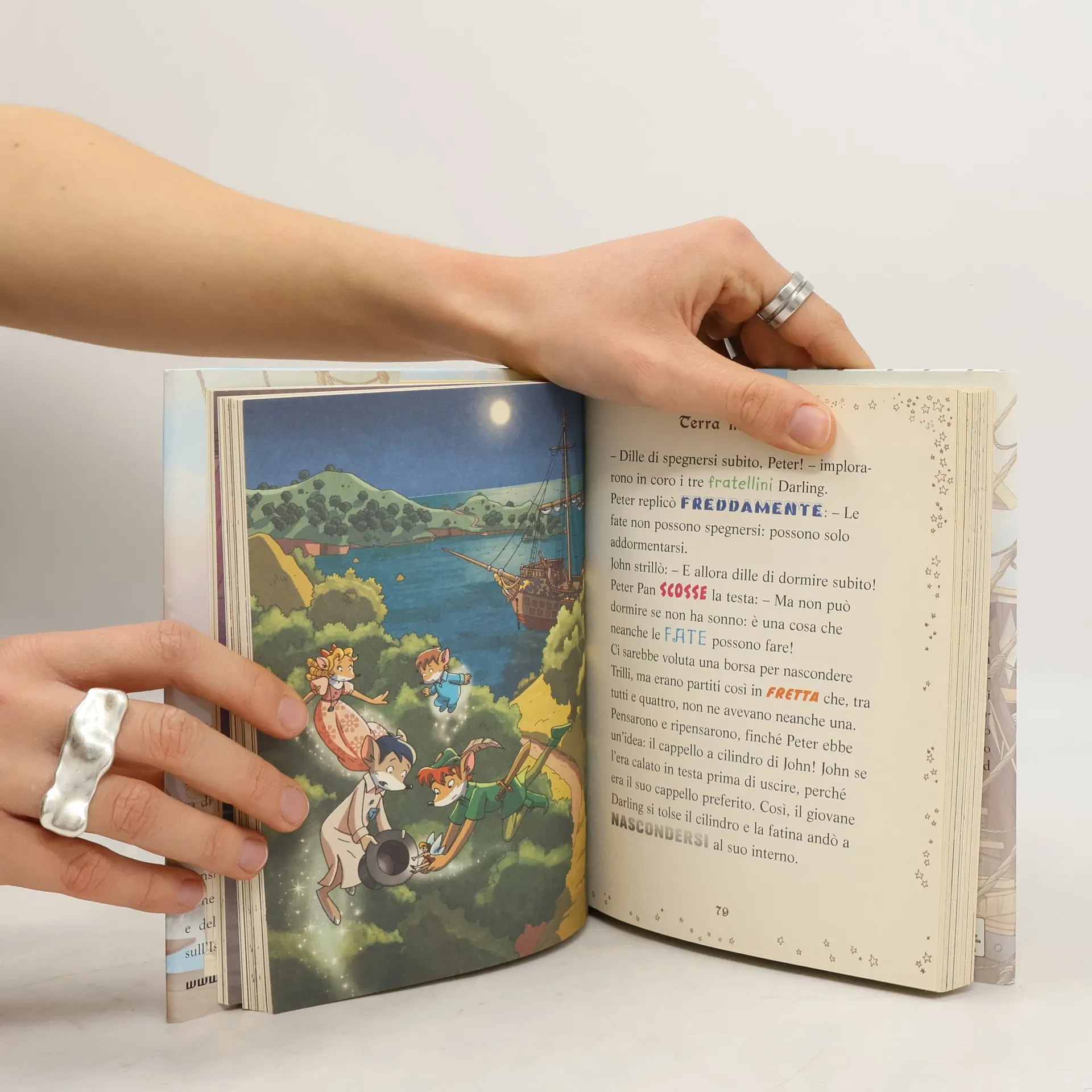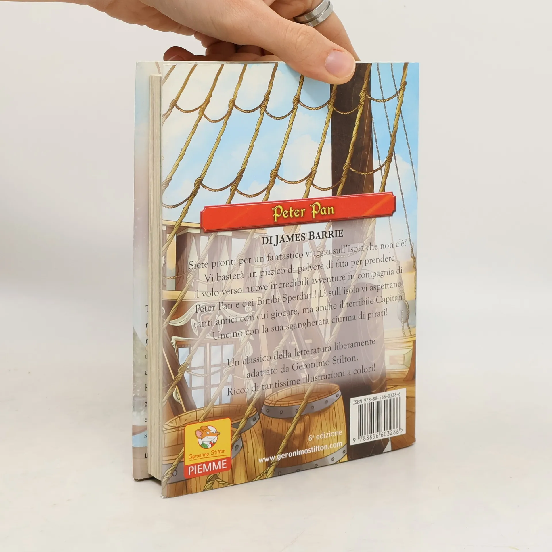 Siete pronti per un fantastico viaggio sull'Isola che non c'è? Vi basterà un pizzico di polvere di fata per prendere il volo verso nuove incredibili avventure in compagnia di Peter Pan e dei Bimbi Sperduti! Lì sull'isola vi aspettano, tanti amici con cui giocare, ma anche il terribile Capitan Uncino con la sua sgangherata ciurma di pirati! Un classico della letteratura liberamente adattato da Geronimo Stilton. Età di da 7 anni.