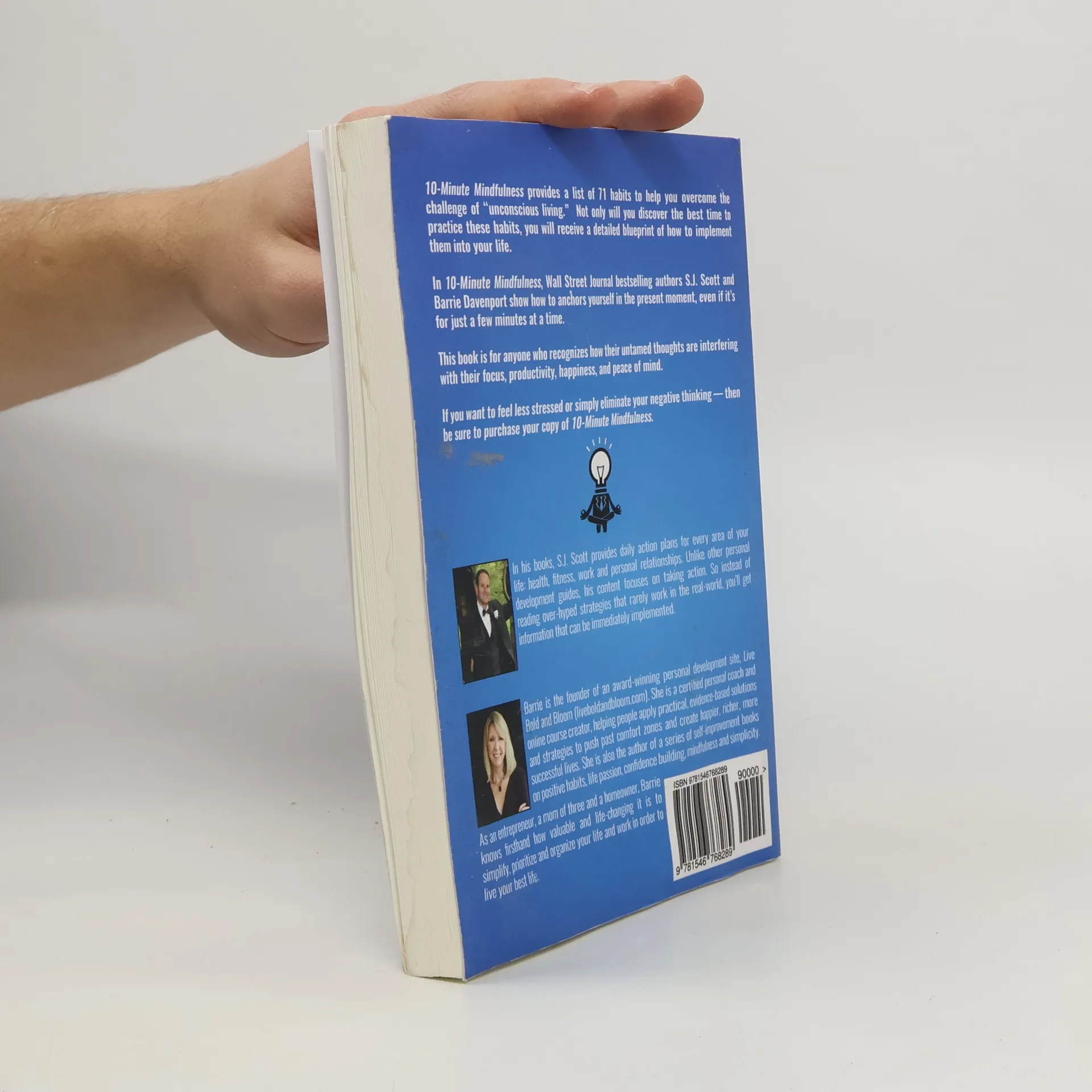 Hate the negativity that often surrounds you? Feel stressed or anxious? Overwhelmed by our hectic, fast-paced modern society? These issues are often the direct result of as vicious cycle known as "unconscious living." You can be unconscious about your lifestyle choices, habits, and thoughts. You can be unconscious about your true values, life priorities, and deeper longings. And you're unconscious from living in the present moment because you're preoccupied by past regrets and worries for the future. The solution is to incorporate mindfulness through your entire day -- so you can enjoy inner peace and happiness . And the simplest way to do this is to build a series of mindfulness habits . DOWNLOAD:: 10-Minute Mindfulness - 71 Habits for Living in the Present Moment In 10-Minute Mindfulness , Wall Street Journal bestselling authors S.J. Scott and Barrie Davenport show how to anchor yourself in the present moment, even if it's for just a few minutes at a time. This book is for anyone who recognize the need to improve their focus, productivity, happiness, and peace of mind. Not only can you choose from a selection of 71 mindfulness habits, you will also discover the practical tools to turn these actions into automatic behavior. In 10-Minute Mindfulness you can "choose your own adventure" and pick the mindfulness habits that will have the biggest positive impact on your life. Would You Like To Know More? Download now to reduce your stress, overcome anxiety, and live in the present moment. Scroll to the top of the page and select the buy now button.