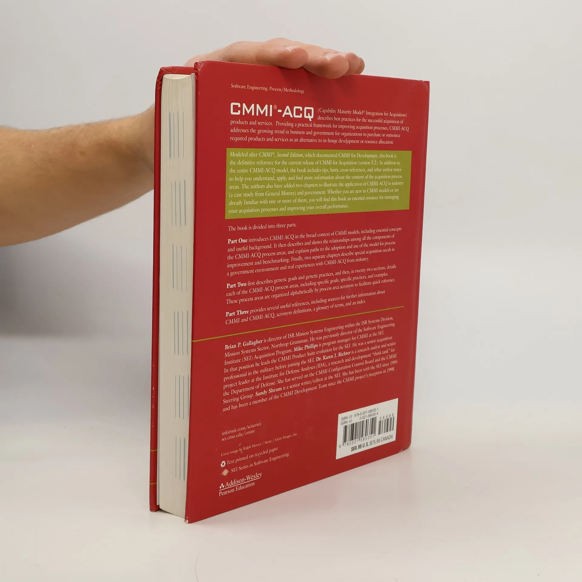 CMMI-ACQ ® (Capability Maturity Model ® Integration for Acquisition) describes best practices for the successful acquisition of products and services. Providing a practical framework for improving acquisition processes, CMMI-ACQ addresses the growing trend in business and government for organizations to purchase or outsource required products and services as an alternative to in-house development or resource allocation. Modeled after CMMI ® , Second Edition, which documented CMMI for Development, this book is the definitive reference for the current release of CMMI for Acquisition (version 1.2). In addition to the entire CMMI-ACQ model, the book includes tips, hints, cross-references, and other author notes to help you understand, apply, and find more information about the content of the acquisition process areas. The authors also have added two chapters to illustrate the application of CMMI-ACQ in industry (a case study from General Motors) and government. Whether you are new to CMMI models or are already familiar with one or more of them, you will find this book an essential resource for managing your acquisition processes and improving your overall performance. The book is divided into three parts. Part One introduces CMMI-ACQ in the broad context of CMMI models, including essential concepts and useful background. It then describes and shows the relationships among all the components of the CMMI-ACQ process areas, and explains paths to the adoption and use of the model for process improvement and benchmarking. Finally, two separate chapters describe special acquisition needs in a government environment and real experiences with CMMI-ACQ from industry. Part Two first describes generic goals and generic practices, and then, in twenty-two sections, details each of the CMMI-ACQ process areas, including specific goals, specific practices, and examples. These process areas are organized alphabetically by process area acronym to facilitate quick reference. Part Three provides several useful references, including sources for further information about CMMI and CMMI-ACQ, acronym definitions, a glossary of terms, and an index.
