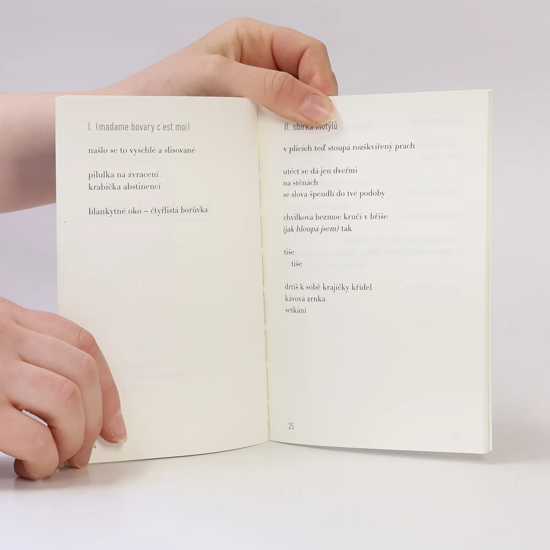 Básnická sbírka mladé talentované autorky Anny Gažiové (nar. 1999 v Českých Budějovicích). Autorka, která na sebe upozornila už v roce 2017, kdy ve své kategorii vyhrála děčínskou Literární cenu Vladimíra Vokolka a o rok později získala čestné uznání v soutěži Ortenova Kutná Hora pro autorky a autory do 22 let, vystudovala bohemistiku a polonistiku (polskou poezii také příležitostně překládá), dokončuje v současné době studium komparatistiky na Filozofické fakultě Univerzity Karlovy. Její básně byly otištěny mj v ročence Nejlepší české básně 2018 a v časopisech Host a A2, publikovány na webech revue Prostor a Ink a několik jich bylo přeloženo do japonštiny a polštiny.