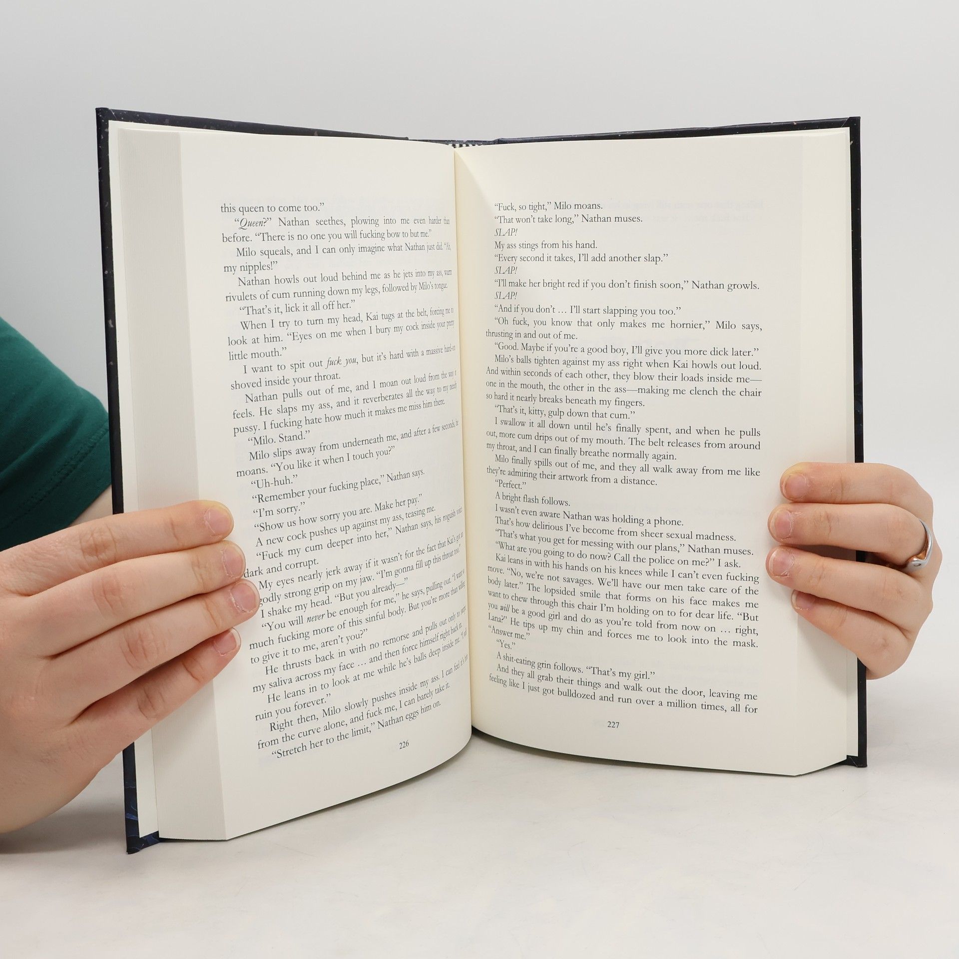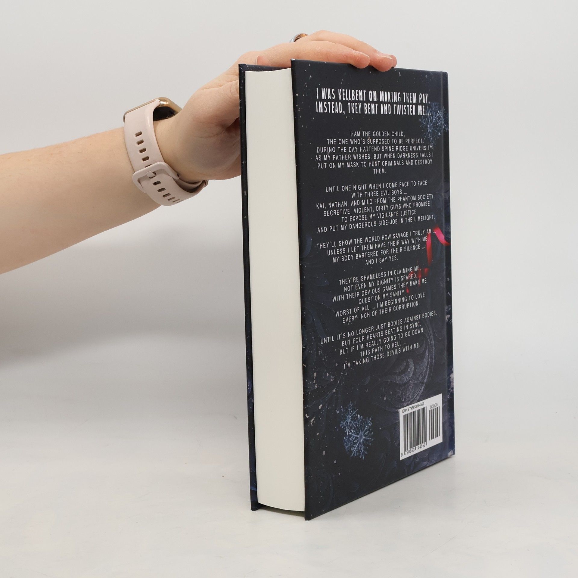 "I am the golden child, the one who's supposed to be perfect. During the day I attend Spine Ridge University as my father wishes, but when darkness falls I put on my mask to hunt criminals and destroy them. Until one night when I come face to face with three evil boys ... Kai, Nathan, and Milo from the Phantom Society. Secretive, violent, dirty guys who promise to expose my vigilante justice and put my dangerous side-job in the limelight. They'll show the world how savage I truly am ... unless I let them have their way with me. My body bartered for their silence ... And I say yes. They're shameless in claiming me, not even my dignity is spared. With their devious games they make me question my sanity. Worst of all ... I'm beginning to love every inch of their corruption. Until it's no longer just bodies against bodies, but four hearts beating in sync. But if I'm really going to go down this path to hell ... I'm taking those devils with me."--From back cover