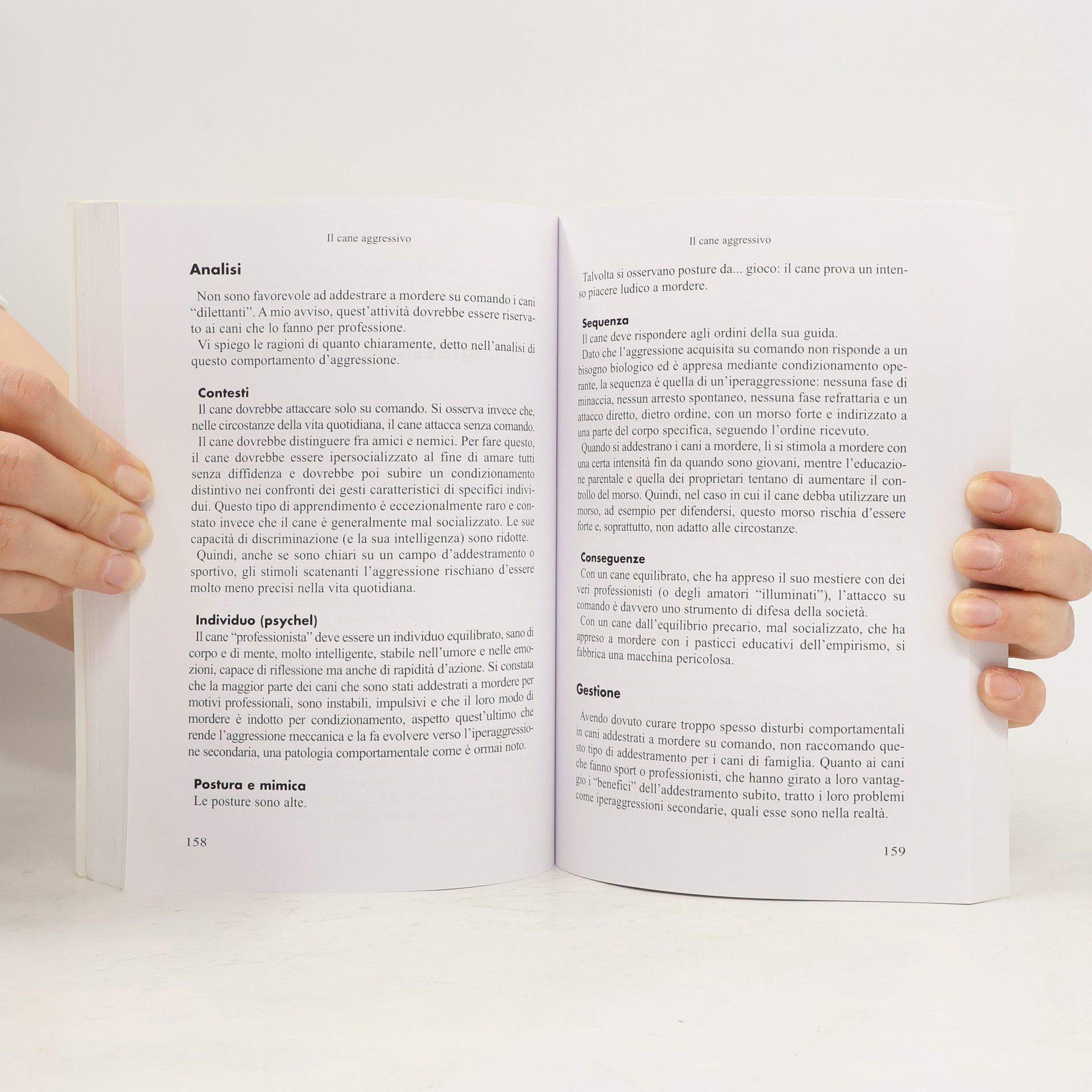 Rédigé par un vétérinaire comportementaliste, cet ouvrage définit la nature de l’agression chez le chien. Il en montre ses multiples facettes afin de « pouvoir prévoir, prévenir et traiter les problèmes liés à l’agressivité et afin que le chien même agressif puisse vivre avec nous dans nos familles ou dans une meute de congénères avec le moins de risque d’accident. » L’auteur analyse les différentes composantes de l’agression, puis évalue les facteurs de dangerosité selon les types d’agressions (offensif, défensif, territorial, de protection...).