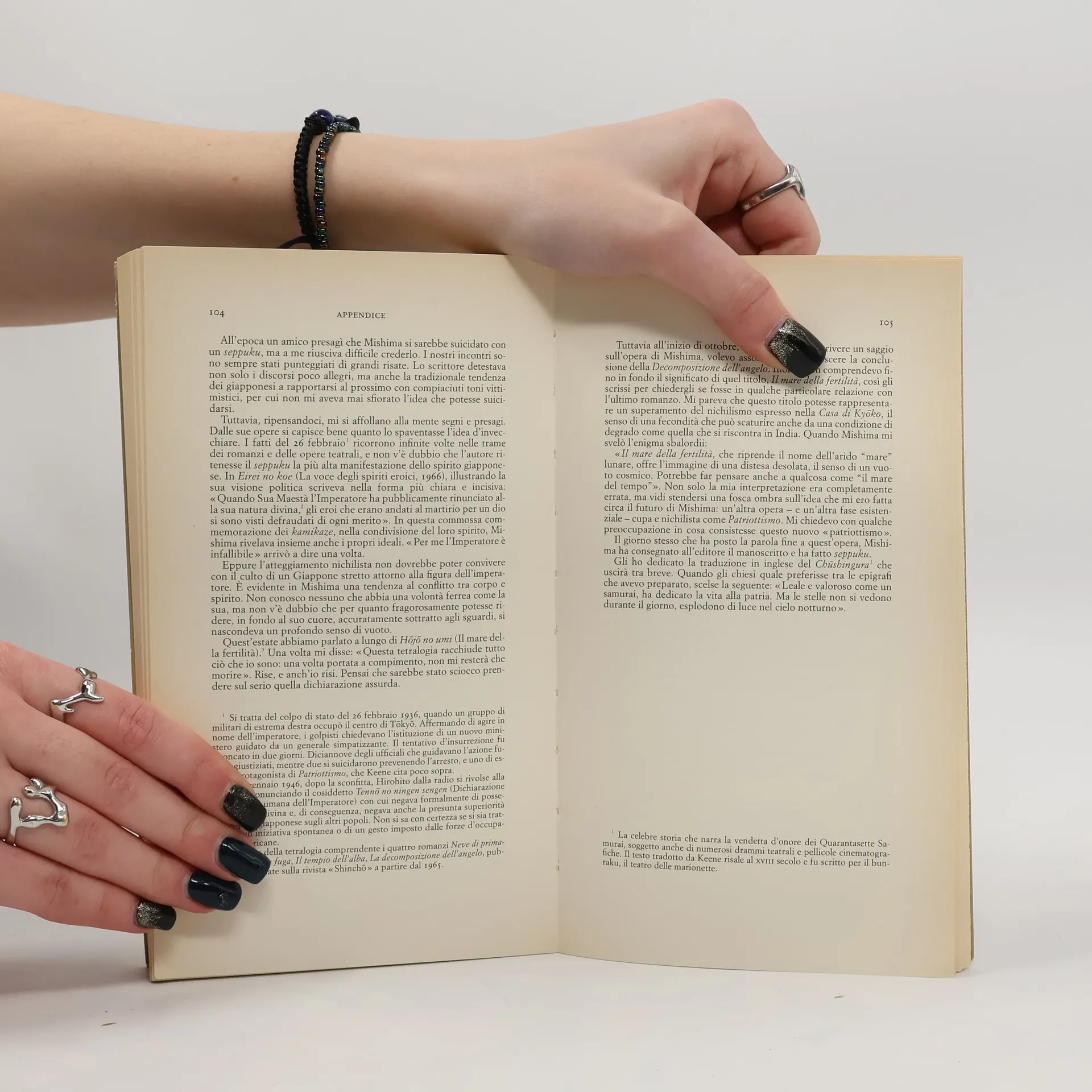 - La spada, di Yukio Mishima - Riflessioni sulla morte di Mishima, di Henry Miller - Proclama, di Yukio Mishima - L'ideologia della morte folle, di Hashikawa Bunzô - Dietro tanta vivacità un senso di vuoto, di Donald Keene - Mishima, di Marguerite Yourcenar 24 foto in appendice.