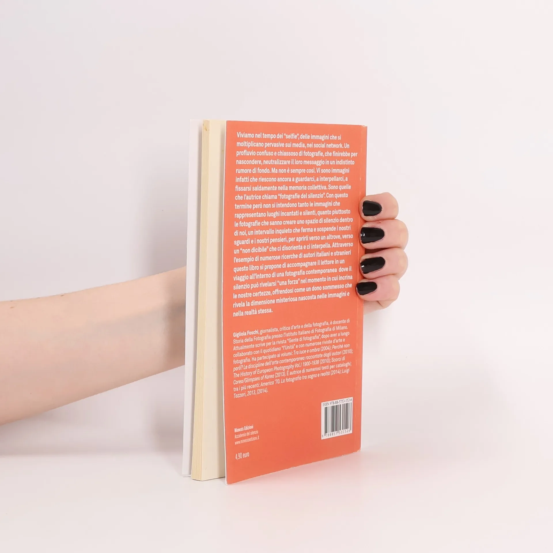 Viviamo nel tempo dei "selfie", delle immagini che si moltiplicano pervasive sui media, nei social network. Un profluvio confuso e chiassoso di fotografie, che finirebbe per nascondere, neutralizzare il loro messaggio in un indistinto rumore di fondo. Ma non è sempre così. Vi sono immagini infatti che riescono ancora a guardarci, a interpellarci, a fissarsi saldamente nella memoria collettiva. Sono quelle che l'autrice chiama "fotografie del silenzio". Con questo termine però non si intendono tanto le immagini che rappresentano luoghi incantati e silenti, quanto piuttosto le fotografie che sanno creare uno spazio di silenzio dentro di noi, un intervallo inquieto che ferma e sospende i nostri sguardi e i nostri pensieri, per aprirli verso un altrove, verso un "non dicibile" che ci disorienta e ci interpella. Attraverso l'esempio di numerose ricerche di autori italiani e stranieri questo libro si propone di accompagnare il lettore in un viaggio all'interno di una fotografia contemporanea dove il silenzio può rivelarsi "una forza" nel momento in cui incrina le nostre certezze, offrendosi come un dono sommesso che rivela la dimensione misteriosa nascosta nelle immagini e nella realtà stessa.