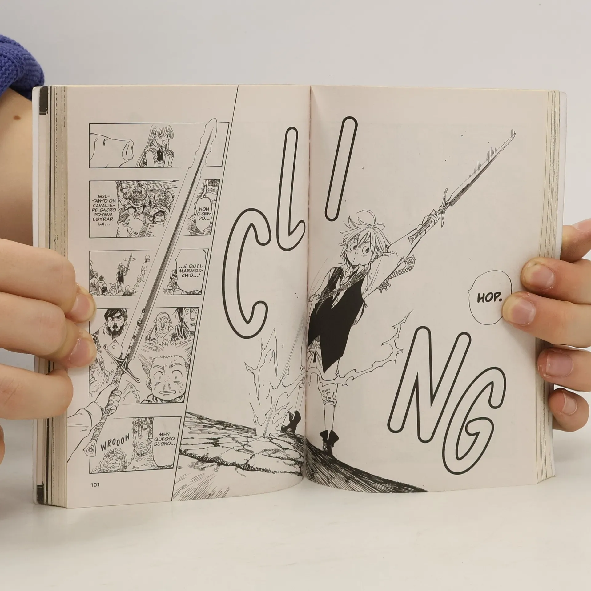 When they were accused of trying to overthrow the monarchy, the feared warriors the Seven Deadly Sins were sent into exile. Princess Elizabeth discovers the truth - the Sins were framed by the king's guard, the Holy Knights - too late to prevent them from assassinating her father and seizing the throne! Now the princess is on the run, seeking the Sins to help her reclaim the kingdom. But the first Sin she meets, Meliodas, is a little innkeeper with a talking pig. He doesn't even have a real sword! Have the legends of the Sins' strength been exaggerated...?