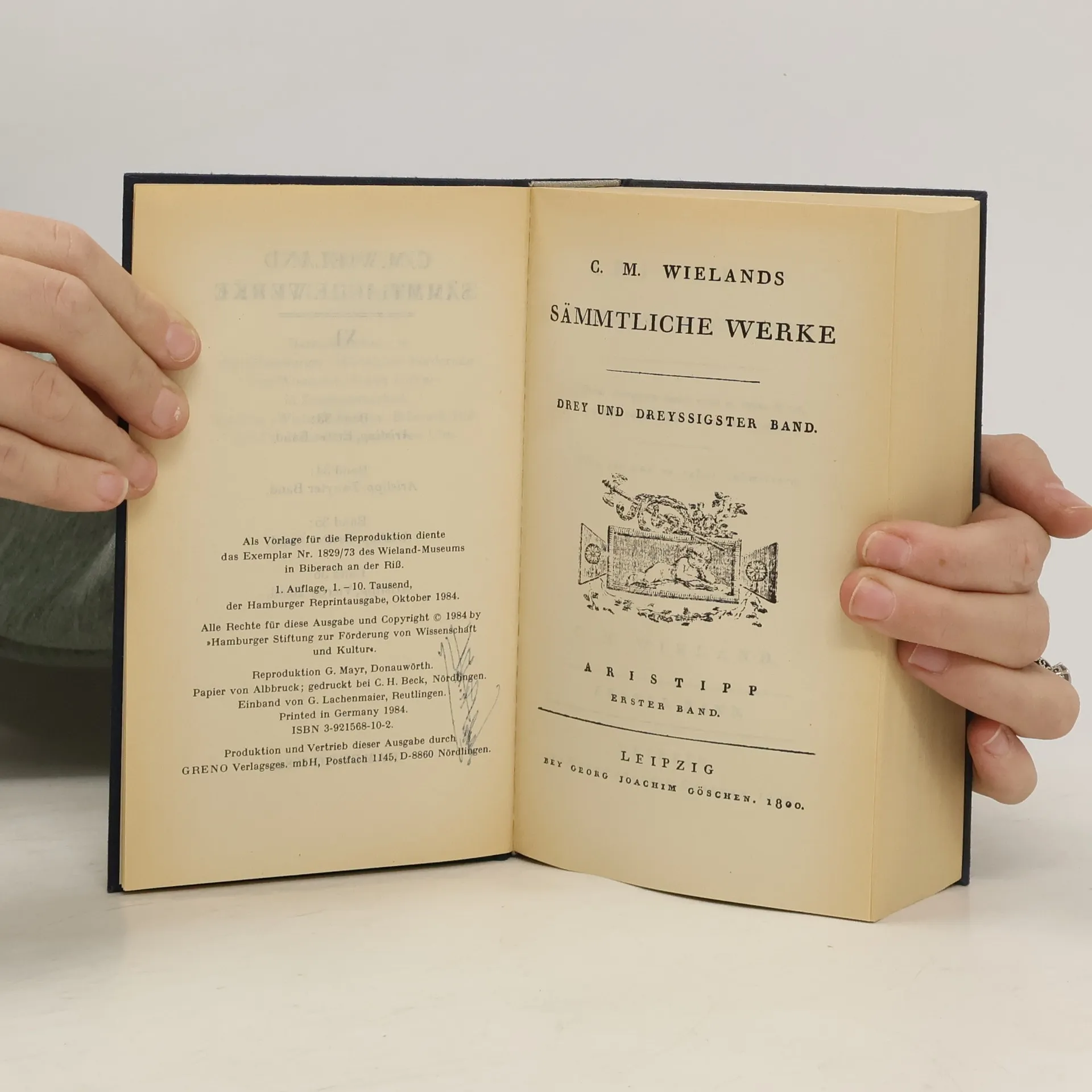 Mit der Beilage: Comische Erzählungen ... und einer Biographie: Wielands Leben von Gruber, J. G. Hrsg. von der Hamburgischen Stiftung zur Förderung von Wissenschaft und Kultur in Zusammenarbeit mit dem Wieland-Archiv, Biberach;Riß von Radspieler, Hans ; Reemtsma, Jan Philipp. Hamburger Reprint. Faksimile-Ausgabe der letzten Hand Leipzig: Göschen 1794 bis 1811. 14 Bde u. 1 Erg.-Band getr. pag. cpl. in Kass.