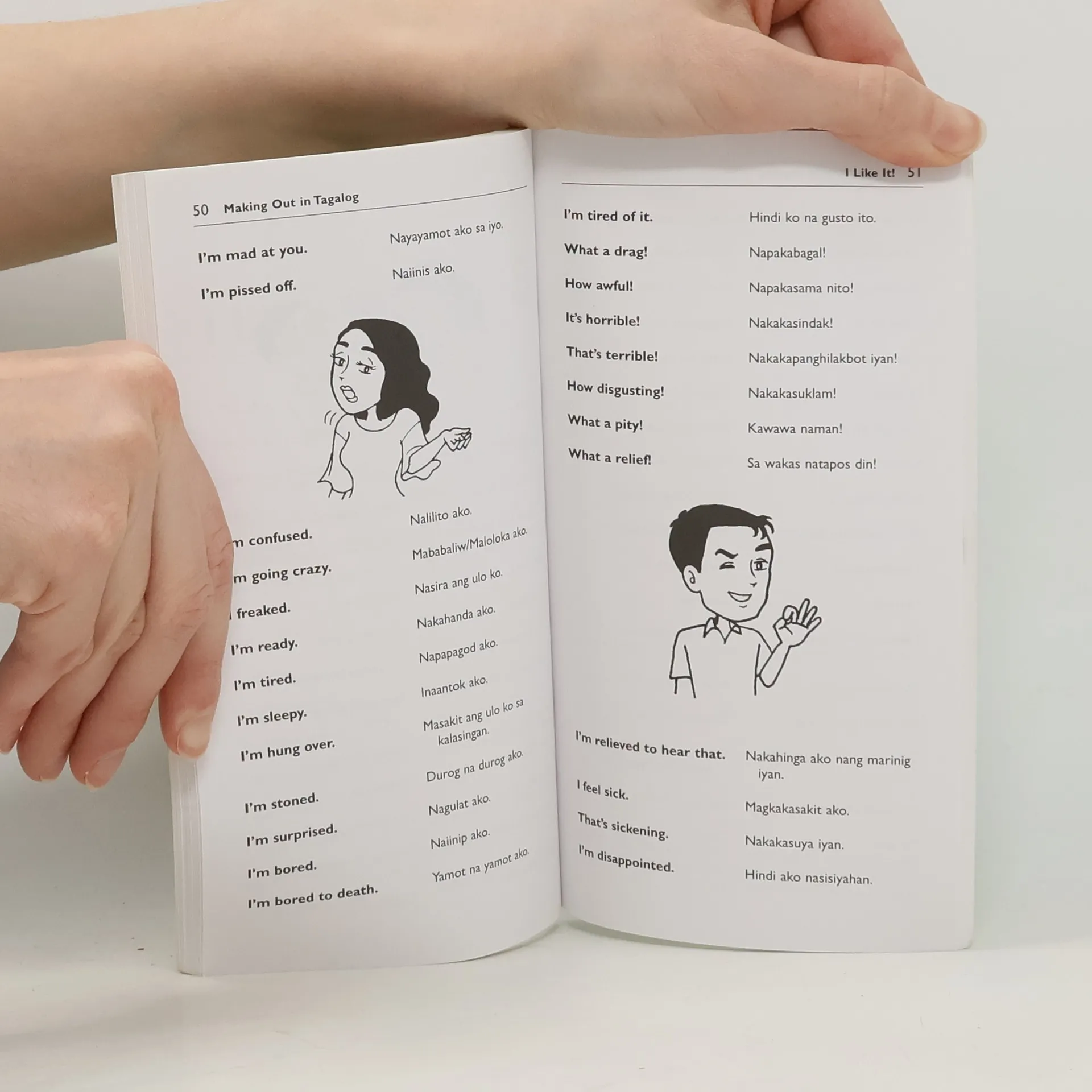 Making Out in Tagalog is a fun, accessible and thorough Tagalog phase book and guide to the Filipino language as it's really spoken.Kinagigilwan kita. Makikita pa ba tayo? —(I am fond of you. Shall we meet again?) Answer this correctly in Tagalog and you may be going on a hot date. Incorrectly, and you could be hurting someone's feelings or getting a slap! Tagalog classes and textbooks tend to spend a lot of time rehearsing for the same fictitious scenarios but chances are while in The Philippines you will spend a lot more time trying to make new friends or start new romances—something you may not be prepared for.If you are a student, businessman or tourist traveling to the Philippines and would like to have an authentic and meaningful experience, the key is being able to speak like a local. This friendly and easy-to-use Tagalog phrasebook makes this possible. Making Out in Tagalog has been carefully designed to act as a guide to modern colloquial Tagalog for use in everyday informal interactions—giving access to the sort of catchy Filipino expressions that aren't covered in traditional language materials. Each expression is given in Tagalog, so that in the case of difficulties the book can be shown to the person the user is trying to communicate with.This Tagalog phrasebook Titles in this unique series of bestselling phrase books Making Out in Chinese, Making Out in Indonesian, Making Out in Thai, Making Out in Korean, Making Out in Hindi, Making Out in Japanese, Making Out in Vietnamese, Making Out in Burmese, Making Out in Tagalog, Making Out in Hindi, Making Out in Arabic, Making Out in English, More Making Out in Korean, and More Making Out in Japanese .