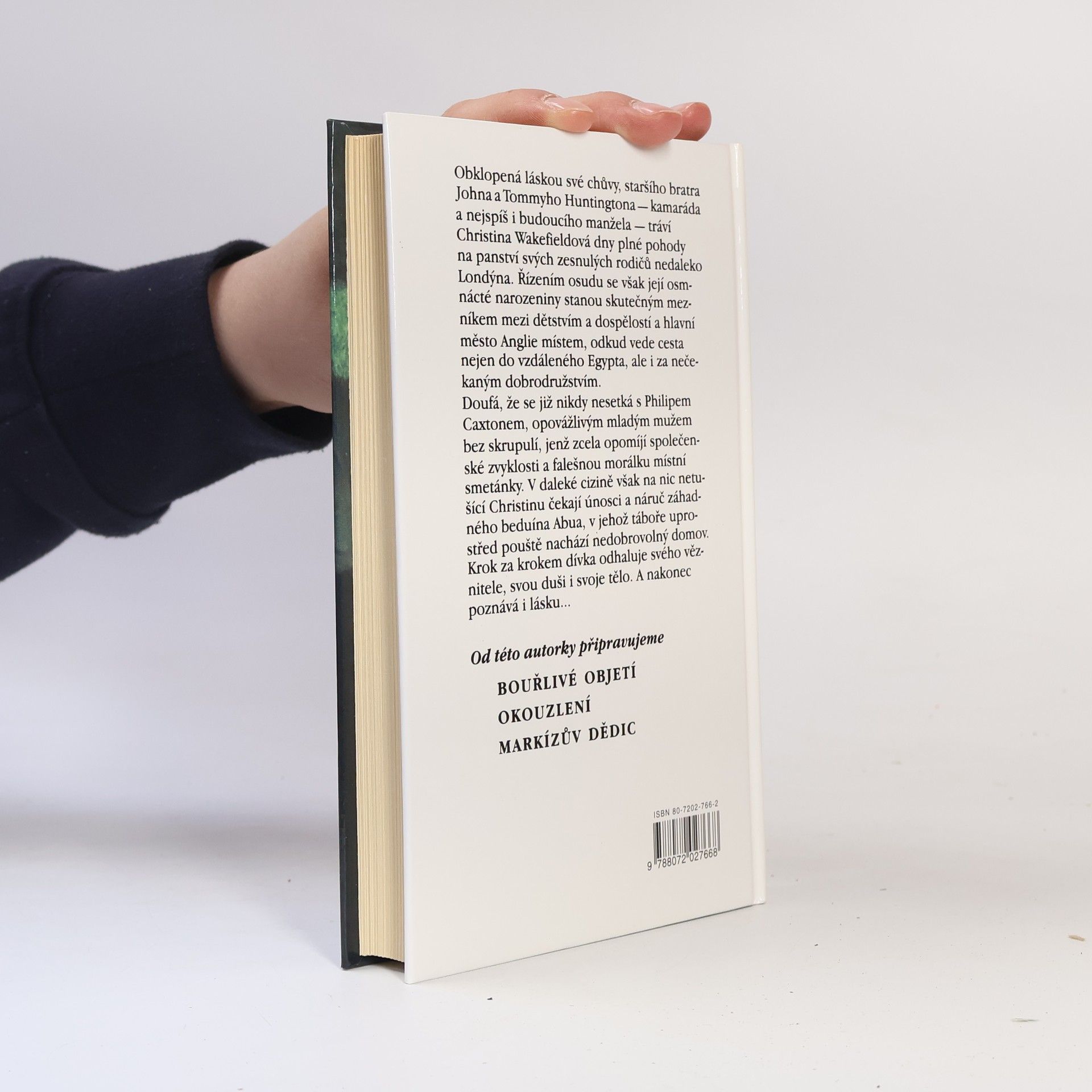 Obklopená láskou své chůvy, staršího bratra Johna a Tommyho Huntingtona - kamaráda a zřejmě i budoucího manžela - tráví Christina Wakefieldová dny plné pohody na panství svých zesnulých rodičů nedaleko Londýna. Řízením osudu se však její osmnácté narozeniny stanou skutečným mezníkem mezi dětstvím a dospělostí a hlavní město Anglie místem, odkud vede cesta jen do vzdáleného Egypta, ale i za nečekaným dobrodružstvím. Christina doufá, že se už nikdy nesetká s Philipem Caxtonem, opovážlivým mladým mužem bez skrupulí, jenž zcela opomíjí společenské zvyklosti a falešnou morálku místní smetánky. V daleké cizině však na nic netušící dívku čekají únosci a náruč záhadného beduína Abua. Krok za krokem dívka odhaluje svého věznitele, svou duši a svoje tělo. A nakonec poznává i lásku...