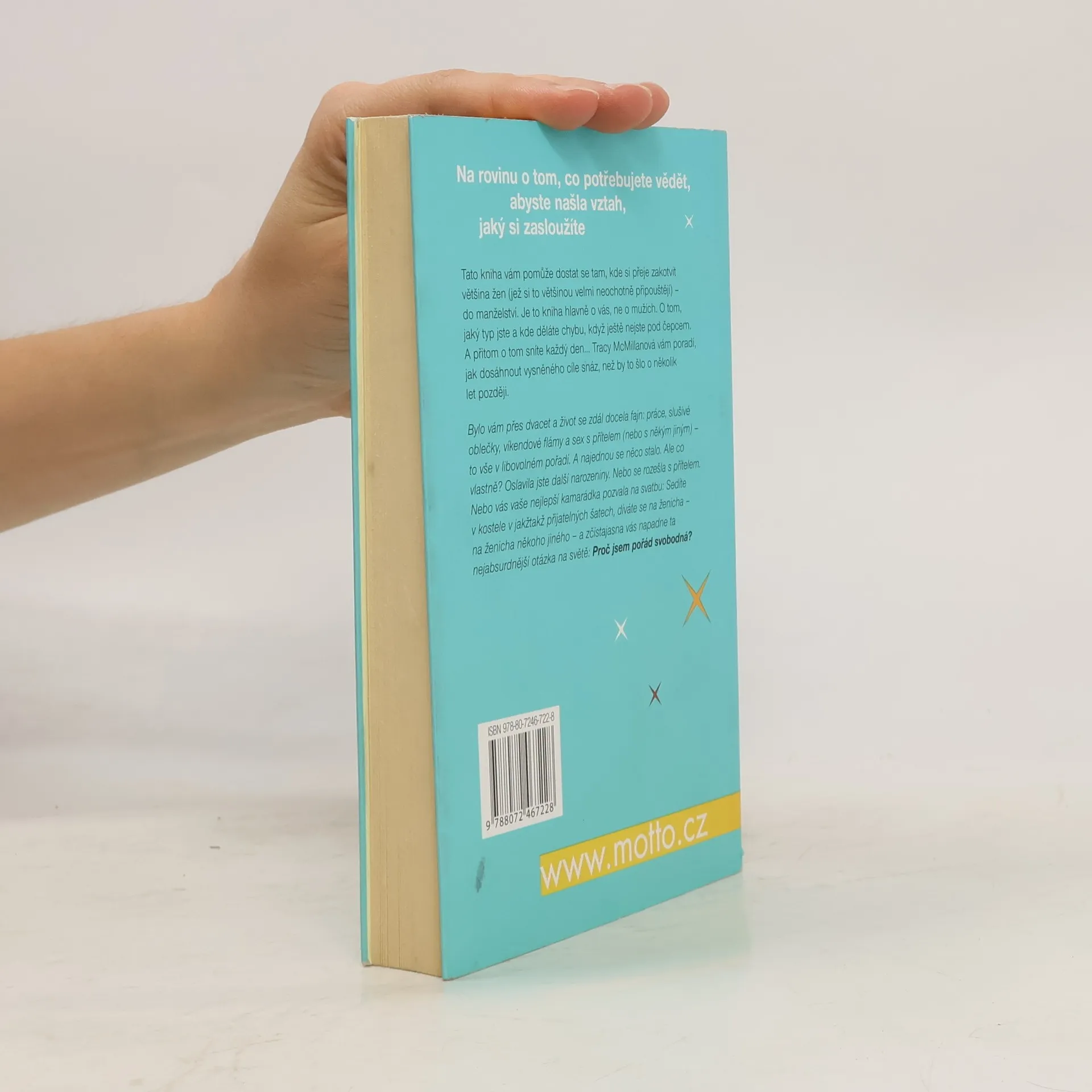 Tato kniha vám pomůže dostat se tam, kde si přeje zakotvit většina žen (jež si to většinou velmi neochotně připouštějí) – do manželství. Je to kniha hlavně o vás, ne o mužích. O tom, jaký typ jste a kde děláte chybu, když ještě nejste pod čepcem. A přitom o tom sníte každý den… Tracy McMillan vám poradí, jak dosáhnout vysněného cíle snáz, než by to šlo o několik let později.