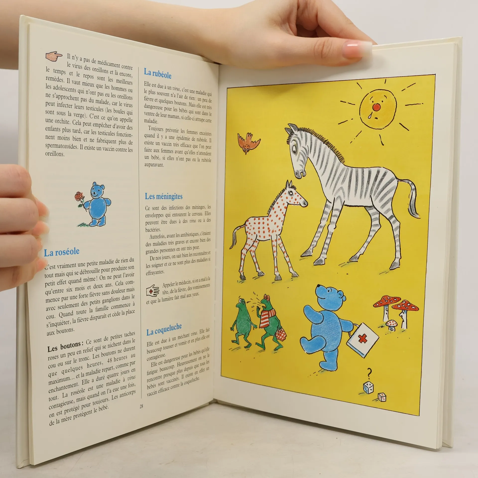 Les informations englobent ce qui a trait à la santé: l'histoire du corps, sa croissance, son fonctionnement, les maladies qui l'atteignent et les médicaments ou traitements appropriés. Le sommaire énonce ainsi les titres de chapitre: Qu'est-ce que les microbes? C'est quoi les maladies? Comment ça va les dents?, etc. Des illustrations simplifiées et amusantes auront l'avantage de fixer les données essentielles et des informations rassurantes.