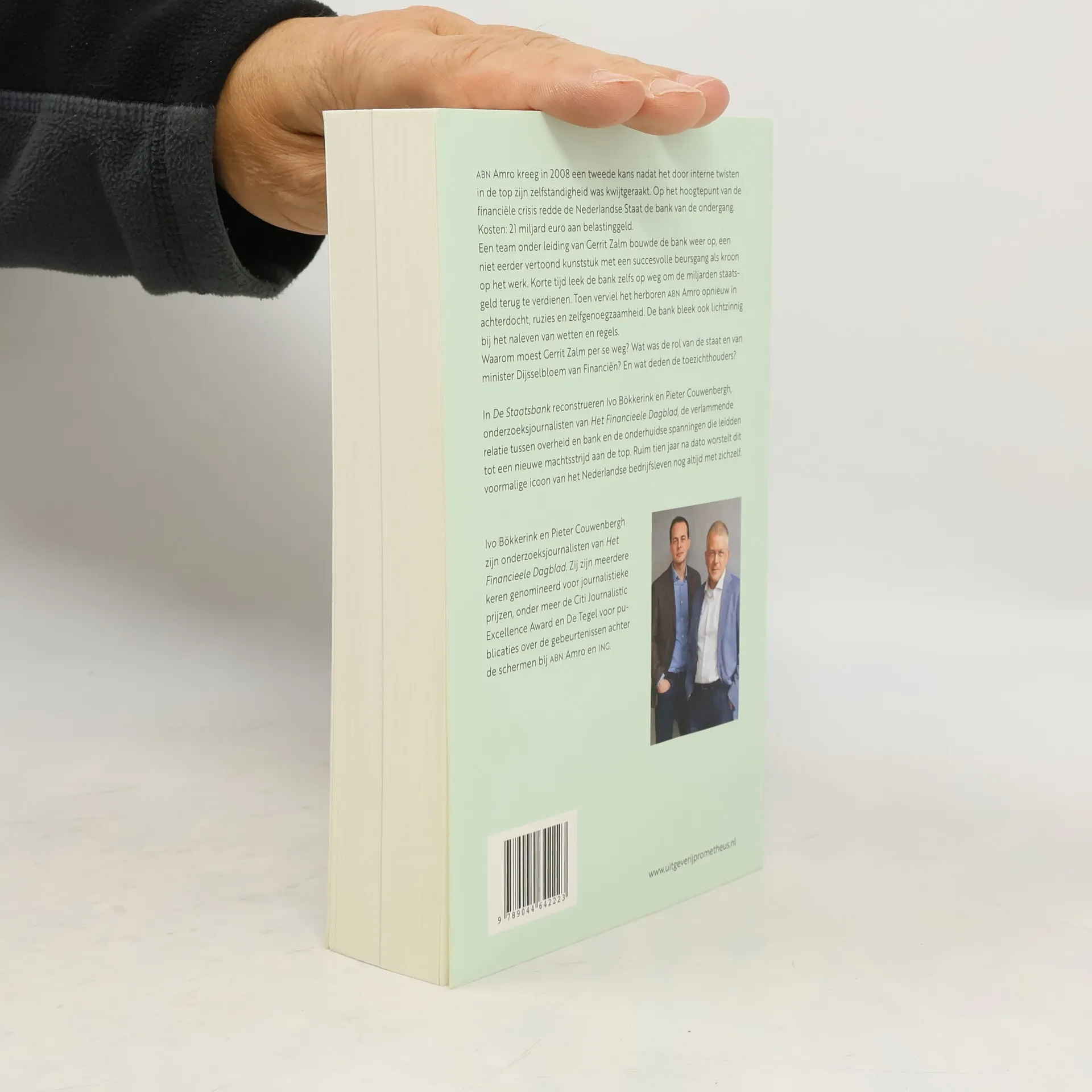 ABN Amro kreeg in 2008 een tweede kans nadat het door interne twisten in de top zijn zelfstandigheid was kwijtgeraakt. Op het hoogtepunt van de financiële crisis redde de Nederlandse staat de bank van de ondergang. Kosten: 21 miljard euro aan belastinggeld. Een team onder leiding van Gerrit Zalm bouwde de bank weer op, een niet eerder vertoond kunststuk met een succesvolle beursgang als kroon op het werk. Korte tijd leek de bank zelfs op weg om de miljarden staatsgeld terug te verdienen. Toen verviel het herboren ABN Amro opnieuw in achterdocht, ruzies en zelfgenoegzaamheid. De bank bleek ook lichtzinnig bij het naleven van wetten en regels. Waarom moest Gerrit Zalm per se weg? Wat was de rol van de staat en van minister Dijsselbloem van Financiën? En wat deden de toezichthouders? In De Staatsbank reconstrueren onderzoeksjournalisten Ivo Bökkerink en Pieter Couwenbergh van Het Financieele Dagblad de verlammende relatie tussen overheid en bank en de onderhuidse spanningen die leidden tot een nieuwe machtsstrijd aan de top. Ruim tien jaar na dato worstelt dit voormalige icoon van het Nederlandse bedrijfsleven nog altijd met zichzelf.