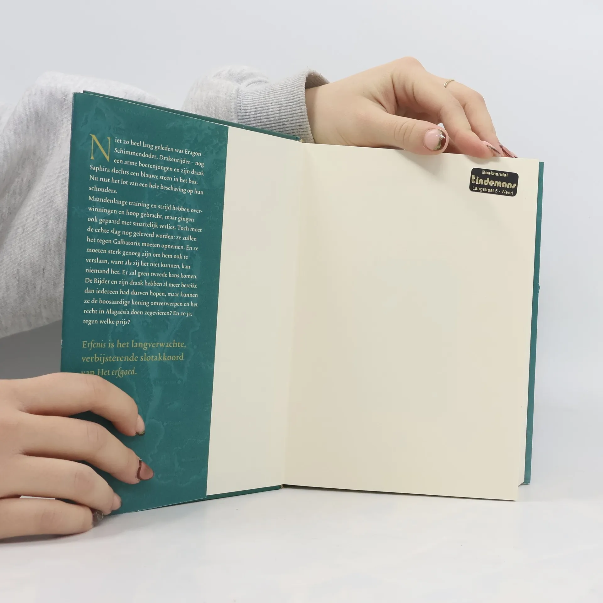 Niet zo heel lang geleden was Eragon - Schimmendoder, Drakenrijder - nog een arme boerenjongen en zijn draak Saphira slechts een blauwe steen in het bos. Nu rust het lot van een hele beschaving op hun schouders. Maandenlange training en strijd hebben overwinningen en hoop gebracht, maar gingen ook gepaard met smartelijk verlies. Toch moet de echte slag nog geleverd worden: ze zullen het tegen Galbatorix moeten opnemen. En ze moeten sterk genoeg zijn om hem ook te verslaan, want als zij het niet kunnen, kan niemand het. Er zal geen tweede kans komen. De Rijder en zijn draak hebben al meer bereikt dan iedereen had durven hopen, maar kunnen ze de boosaardige koning omverwerpen en het recht in Alagaësia doen zegevieren? En zo ja, tegen welke prijs?