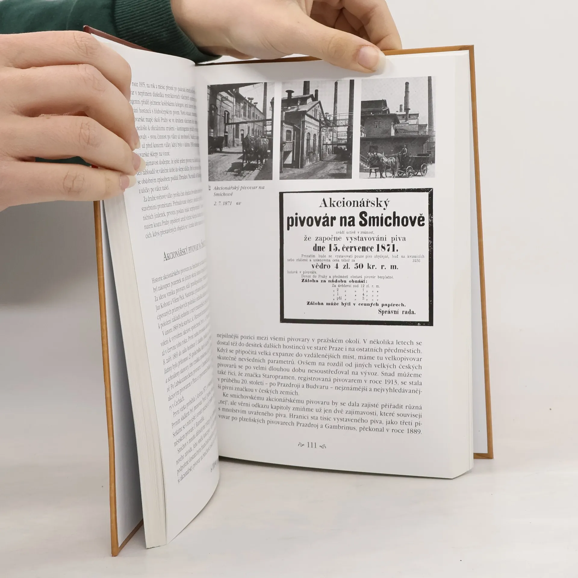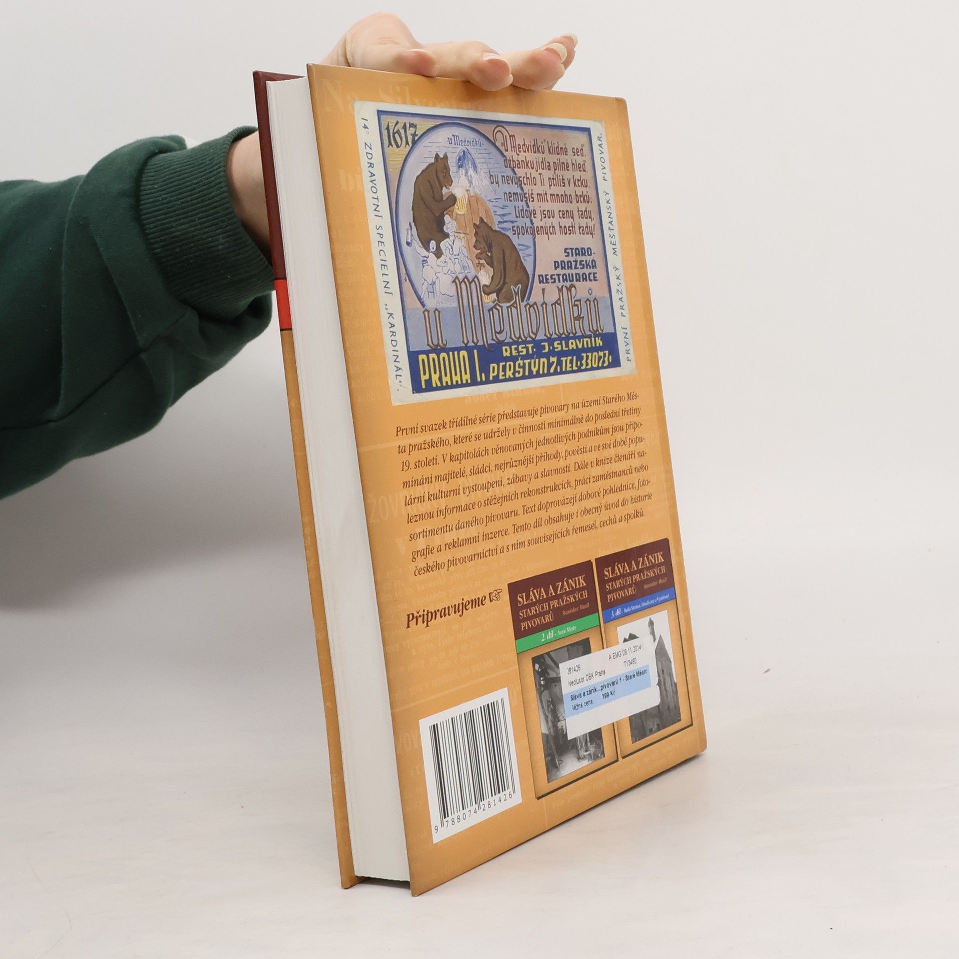 Úvodní svazek třídílné série je přehledem pivovarů na území Starého Města pražského, které se udržely v činnosti minimálně do poslední čtvrtiny 19. století. V kapitolách věnovaných jednotlivých podnikům jsou připomínáni majitelé, sládci, nejrůznější příhody, pověsti a ve své době populární kulturní vystoupení, zábavy a slavnosti, které měly v mnoha pivovarských hostincích pevné zázemí. Dále jsou zde uvedeny informace technického rázu – stěžejní rekonstrukce, práce zaměstnanců nebo sortiment daného pivovaru. Součástí některých statí jsou též medailónky význačných sládků či vzpomínky zaměstnanců v podobě citací z dobových písemností. K některým pivovarům se vážou i dosud nepublikované soukromé poznámky zainteresovaných pamětníků. Vedle toho obsahuje tato kniha i obecnou historii českého pivovarnictví, jež sleduje rozvoj církevních, měšťanských, šlechtických nebo později akciových pivovarů a chronologicky popisuje významné politické události mající vazbu na toto odvětví. Čtenáři se také dočtou o jednotlivých řemeslech, profesích, bratrstvech, ceších, spolcích, ale též o druzích piv či dovozu piva do Prahy. Text doplňují dobové pohlednice, fotografie a reklamní inzerce. Jedná se o unikátní dokumenty, nejstarší z nich pocházejí ze 30. let 19. století!