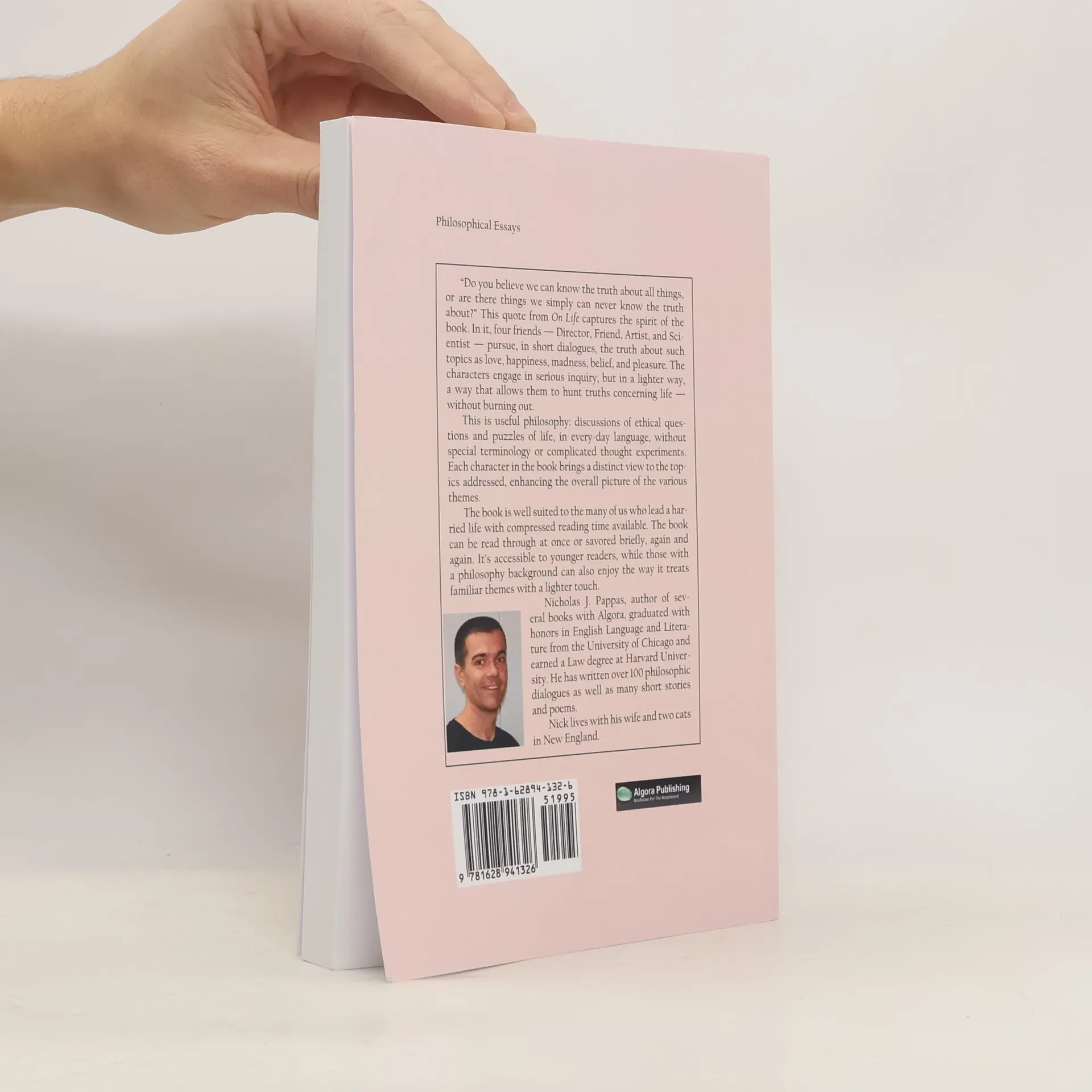 'Do you believe we can know the truth about all things, or are there things we simply can never know the truth about?' This quote from On Life captures the spirit of the book. In it, four friends Director, Friend, Artist, and Scientist pursue, in short dialogues, the truth about such topics as love, happiness, madness, belief, and pleasure. The characters engage in serious inquiry, but in a lighter way, a way that allows them to hunt truths concerning life without burning out.This is useful philosophy: discussions of ethical questions and puzzles of life, in every-day language, without special terminology or complicated thought experiments. Each character in the book brings a distinct view to the topics addressed, enhancing the overall picture of the various themes.The book is well suited to the many of us who lead a harried life with compressed reading time available. The book can be read through at once or savored briefly, again and again. It s accessible to younger readers, while those with a philosophy background can also enjoy the way it treats familiar themes with a lighter touch.