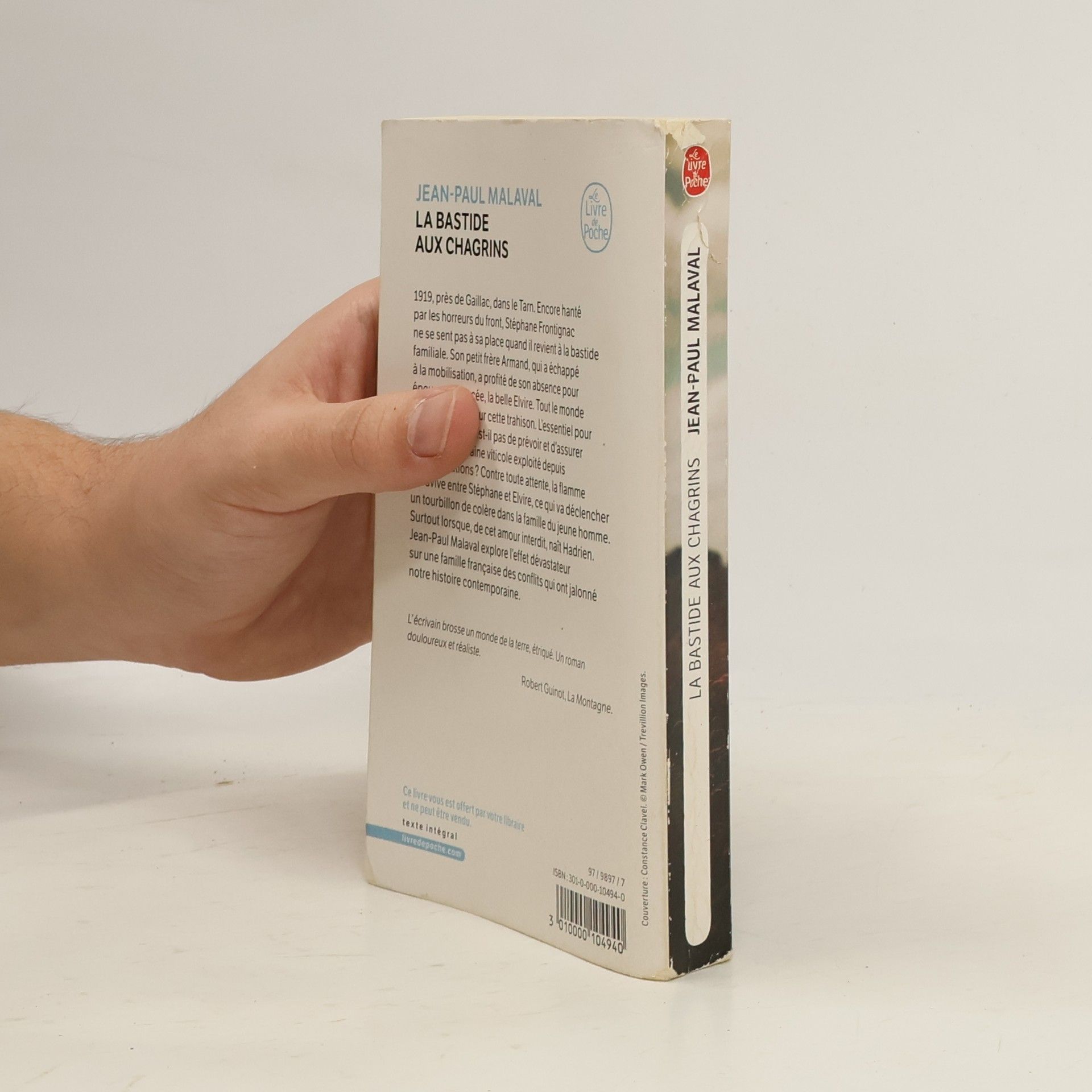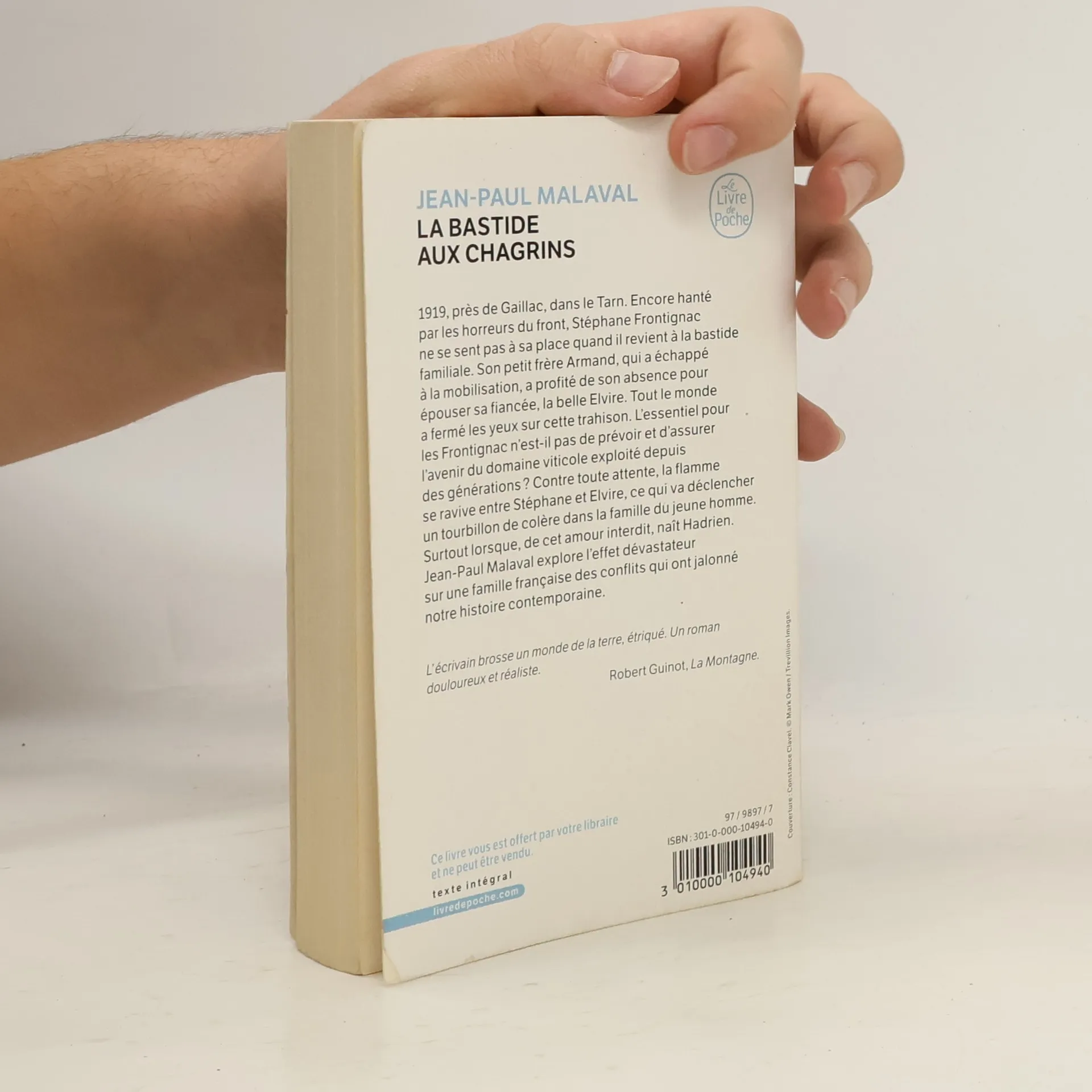 1919, pres de Gaillac, dans le Tarn. Encore hante par les horreurs du front, Stephane Frontignac ne se sent pas a sa place quand il revient a la bastide familiale. Son petit frere Armand, qui a echappe a la mobilisation, a profite de son absence pour epouser sa fiancee, la belle Elvire. Tout le monde a ferme les yeux sur cette trahison. L'essentiel pour les Frontignac n'est-il pas de prevoir et d'assurer l'avenir du domaine viticole exploite depuis des generations ? Contre toute attente, la flamme se ravive entre Stephane et Elvire ce qui va declencher un tourbillon de colere dans la famille du jeune homme. Surtout lorsque, de cet amour interdit, nait Hadrien. Jean-Paul Malaval explore l'effet devastateur sur une famille francaise des conflits qui ont jalonne notre histoire contemporaine. L'ecrivain brosse un monde de la terre, etrique. Un roman douloureux et realiste. Robert Guinot, La Montagne .